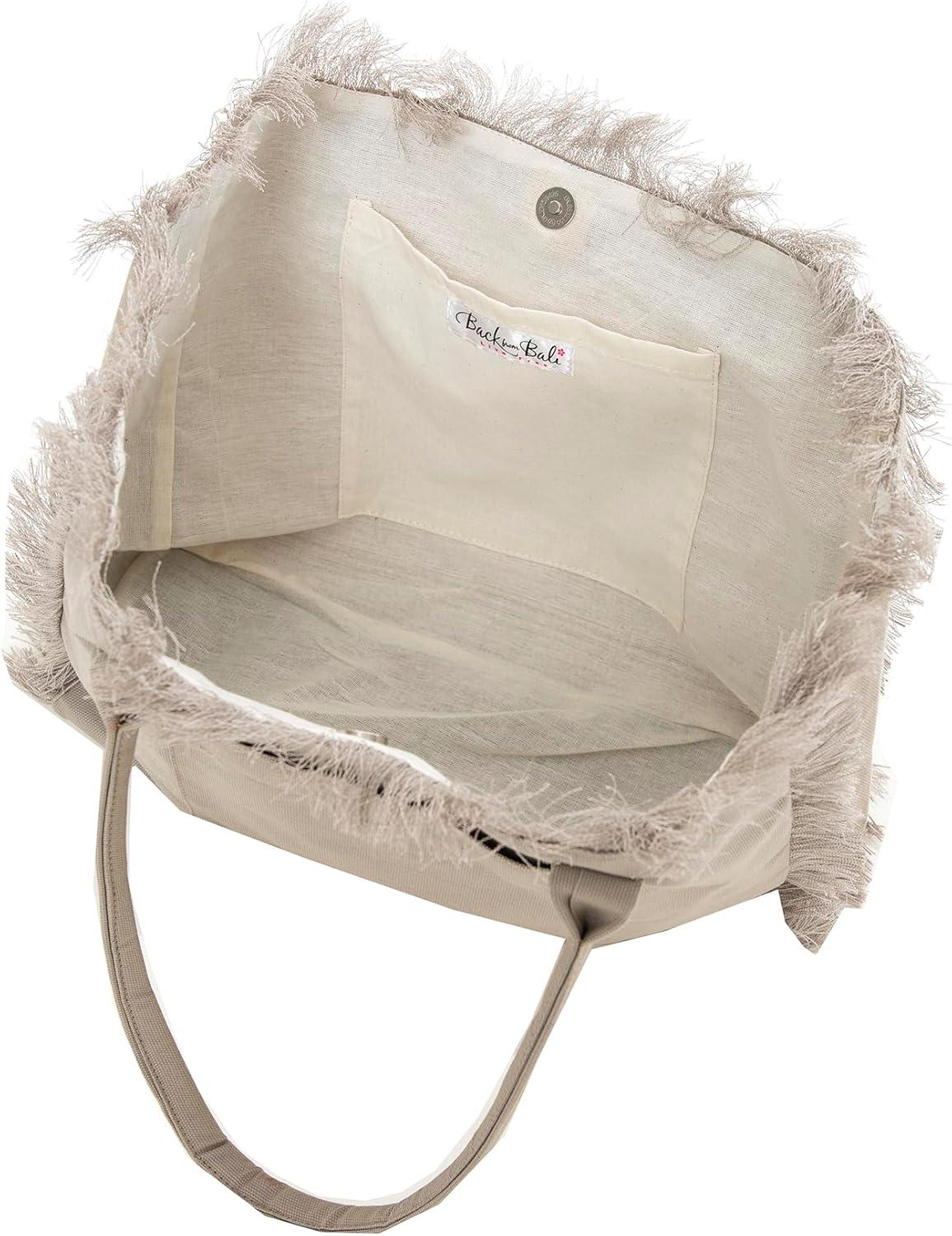 This handcrafted Bali tote is a stunning, eco-friendly accessory made from ethically sourced new cotton canvas. Features two pockets – one outer and one inner, for carrying your wallet, cell phone and keys. Each tote is thoughtfully crafted with sustainability and style in mind, offering a unique, fashionable way to carry your essentials. Whether for the beach or city, this beautiful tote blends creativity, craftsmanship, and conscious materials into a must-have piece.