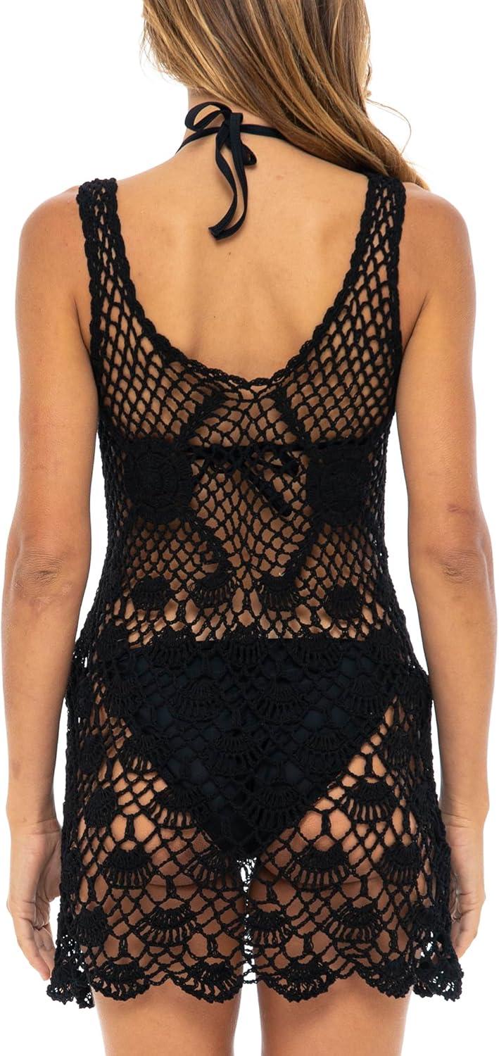 Back From Bali Womens 100% Cotton Crochet Artisan Knit Swimsuit Cover Up Sleeveless Bathing Suit Beach Dress(Black)