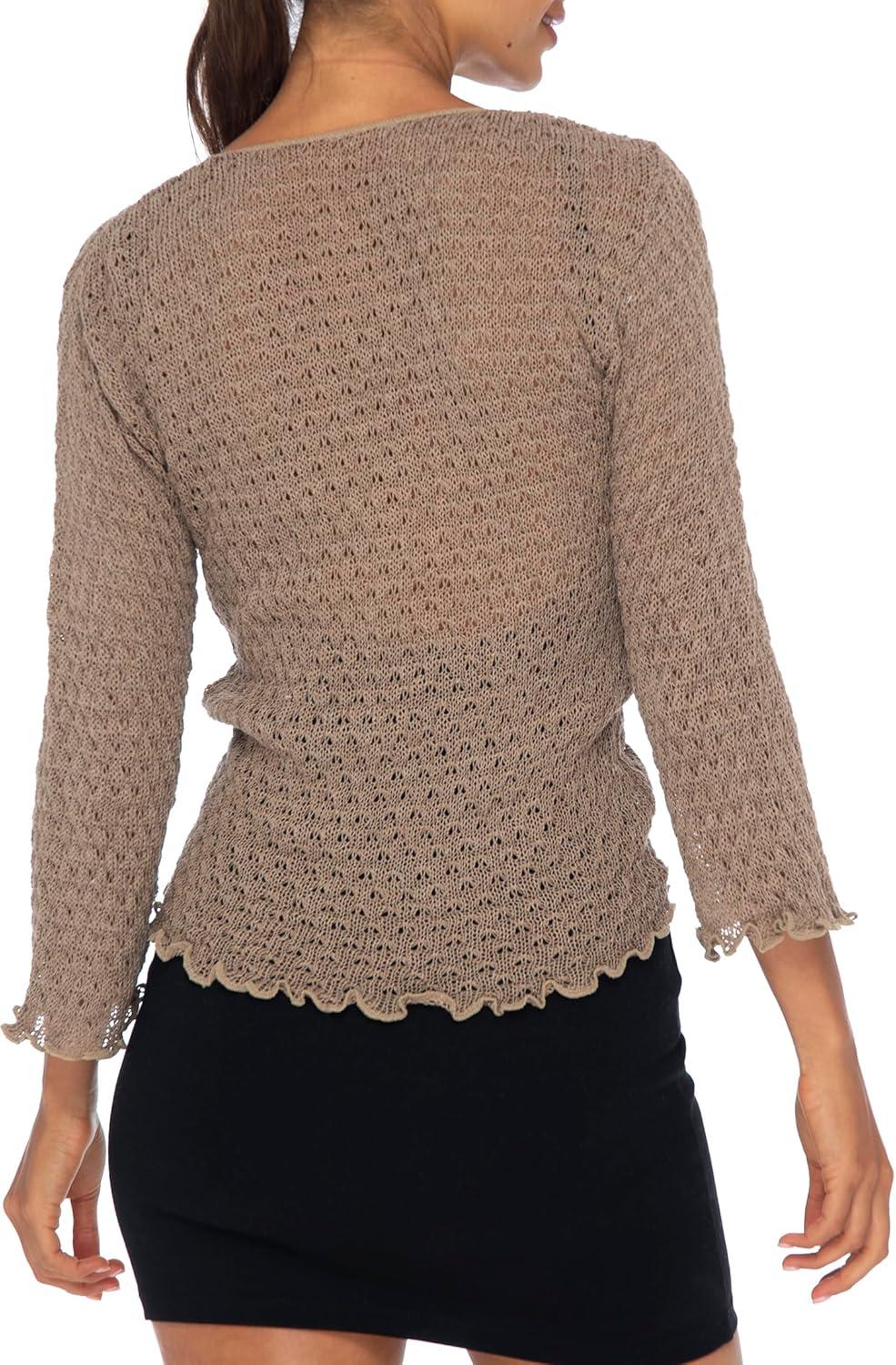 Back From Bali Womens 100% Cotton Shrug Tie Front Cardigan Lightweight Soft Knit 3/4 Sleeve Open Front Sweater(Beige)