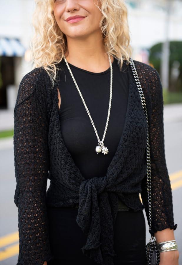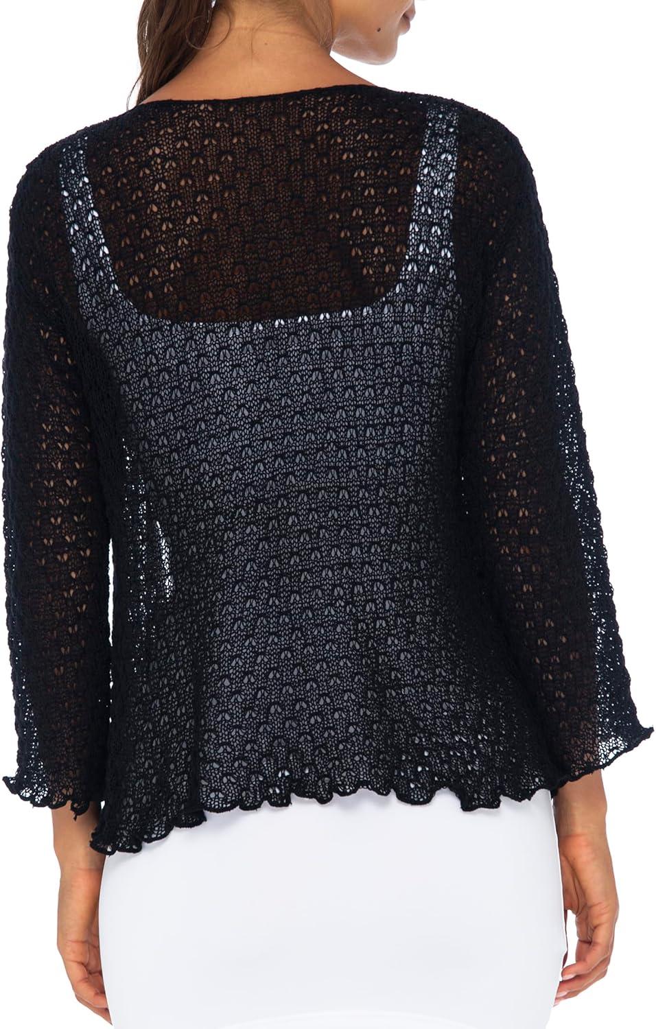Back From Bali Womens 100% Cotton Shrug Tie Front Cardigan Lightweight Soft Knit 3/4 Sleeve Open Front Sweater(Black)
