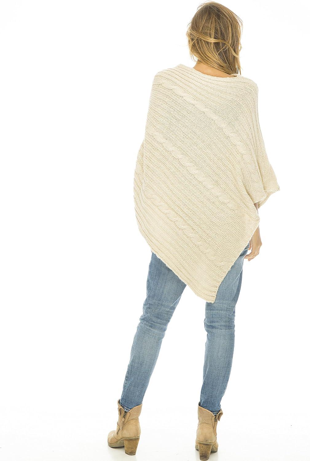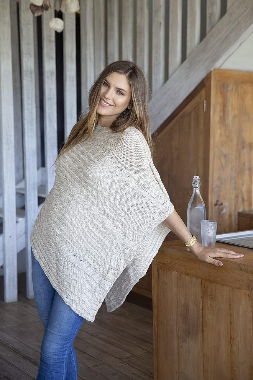 Back From Bali Womens Cable Knit Poncho Sweater Cape Boho Soft Casual(Natural)