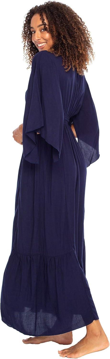 Back From Bali Womens Casual Boho Dress Long Maxi Flowy Dresses with Deep V Neck Summer Sundress(Navy)