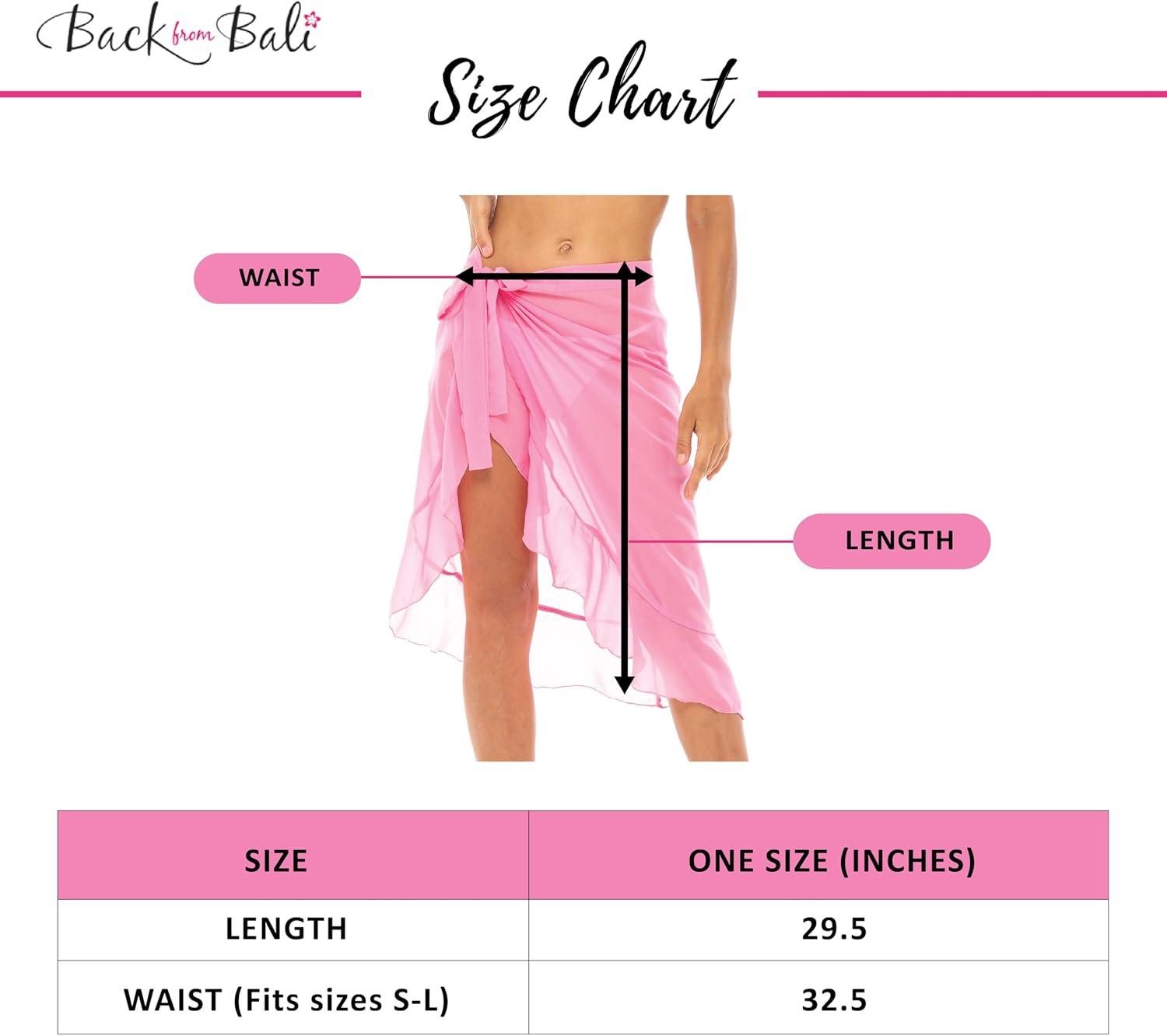 Elevate your summer wardrobe with this pretty, sheer chiffon ruffled sarong. The lightweight fabric drapes beautifully, flattering all figure types. This wrap skirt features waist ties creating a polished silhouette. This knee length ruffled sarong is made from high-quality polyester that is designed to wash and wear and is quick drying. You’ll enjoy this pareo for many seasons to come. It’s the perfect dressy sarong to accent a swimsuit, bikini, bike shorts or hotpants.