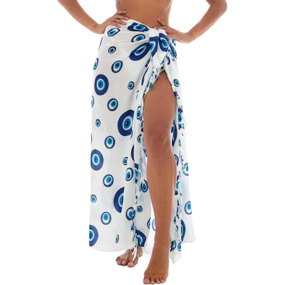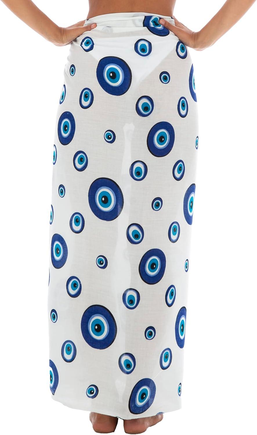 Back From Bali Womens Evil Eye Sarong Swimsuit Cover Up Greek Island Third Eye Pareo Wrap Skirt(Paros White)
