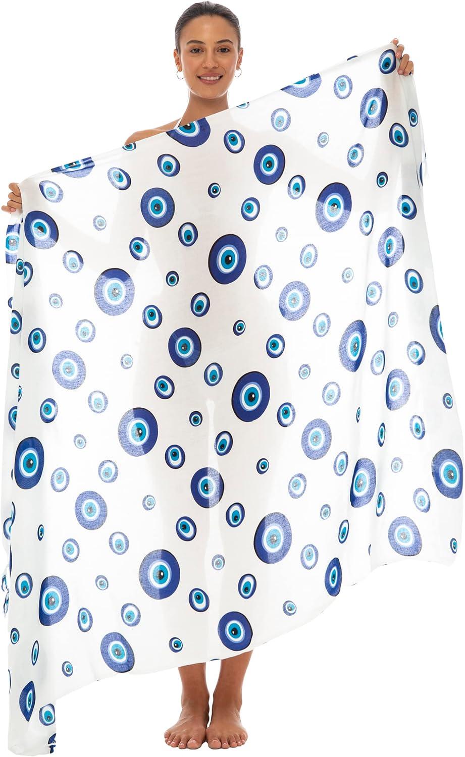 Back From Bali Womens Evil Eye Sarong Swimsuit Cover Up Greek Island Third Eye Pareo Wrap Skirt(Paros Blue)