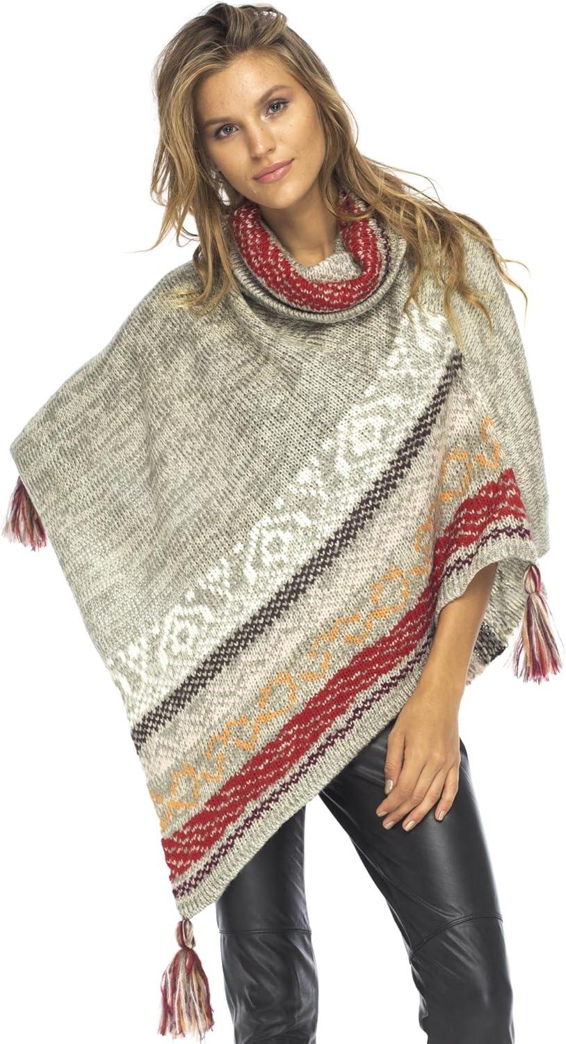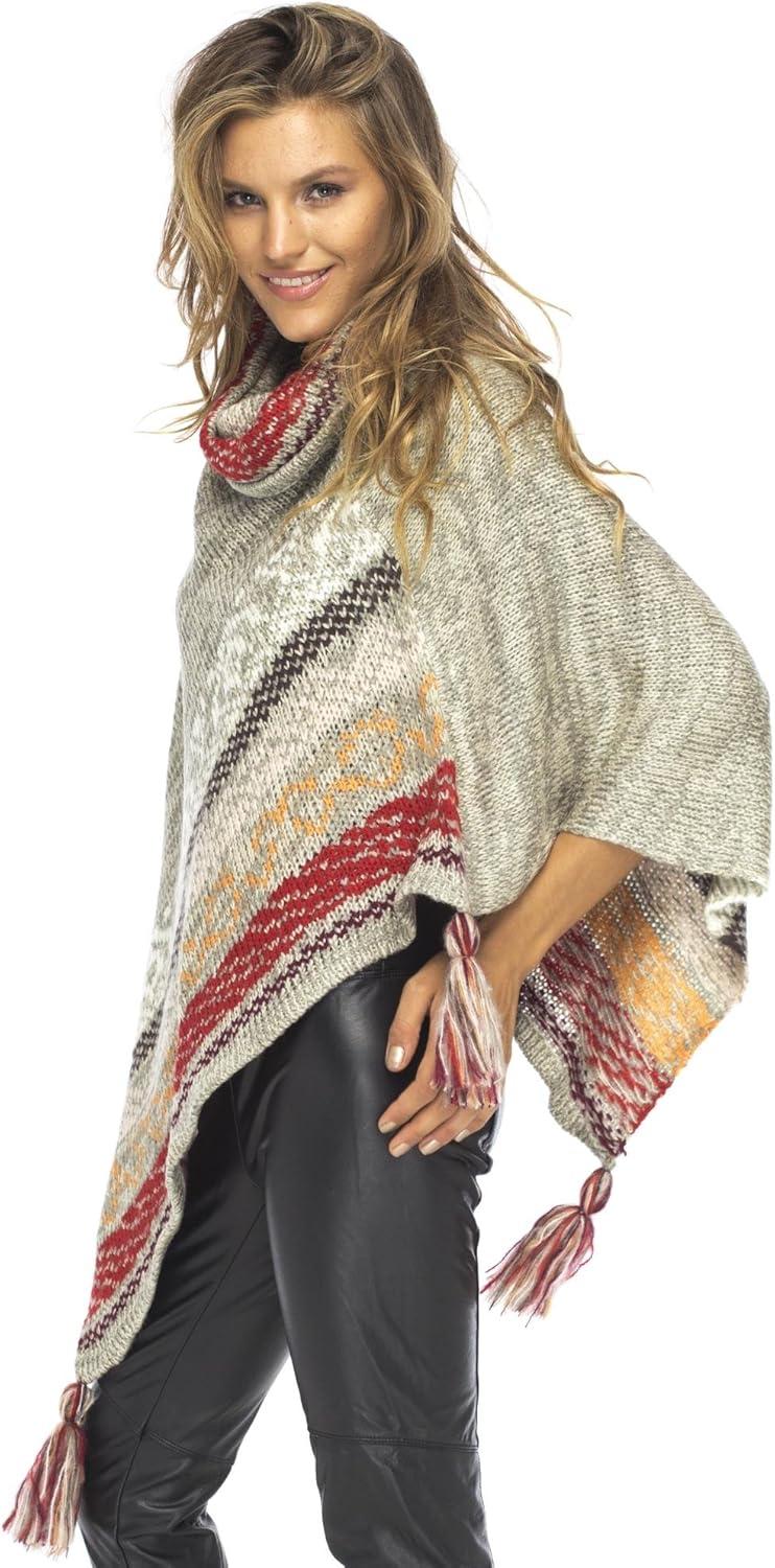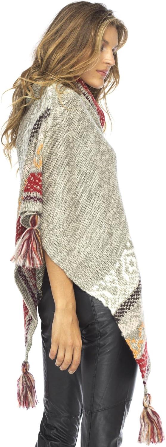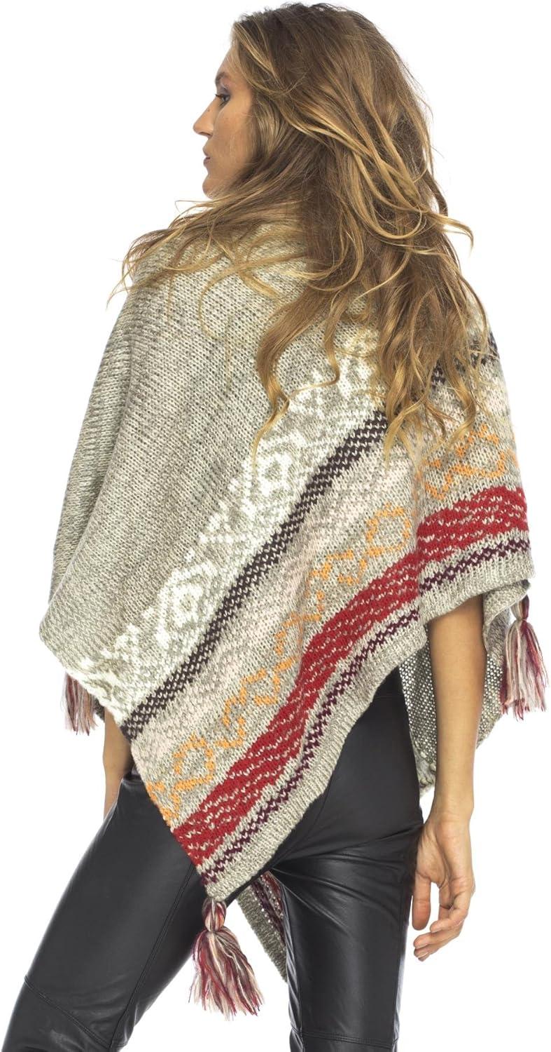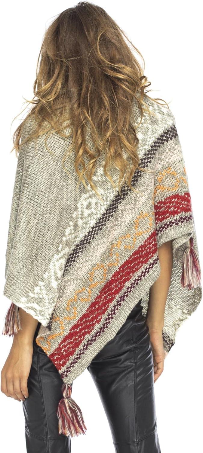 Back From Bali Womens Knit Sweater Cape Boho Soft T Neck Cowl Neck Poncho Tassels(Grey Natural)
