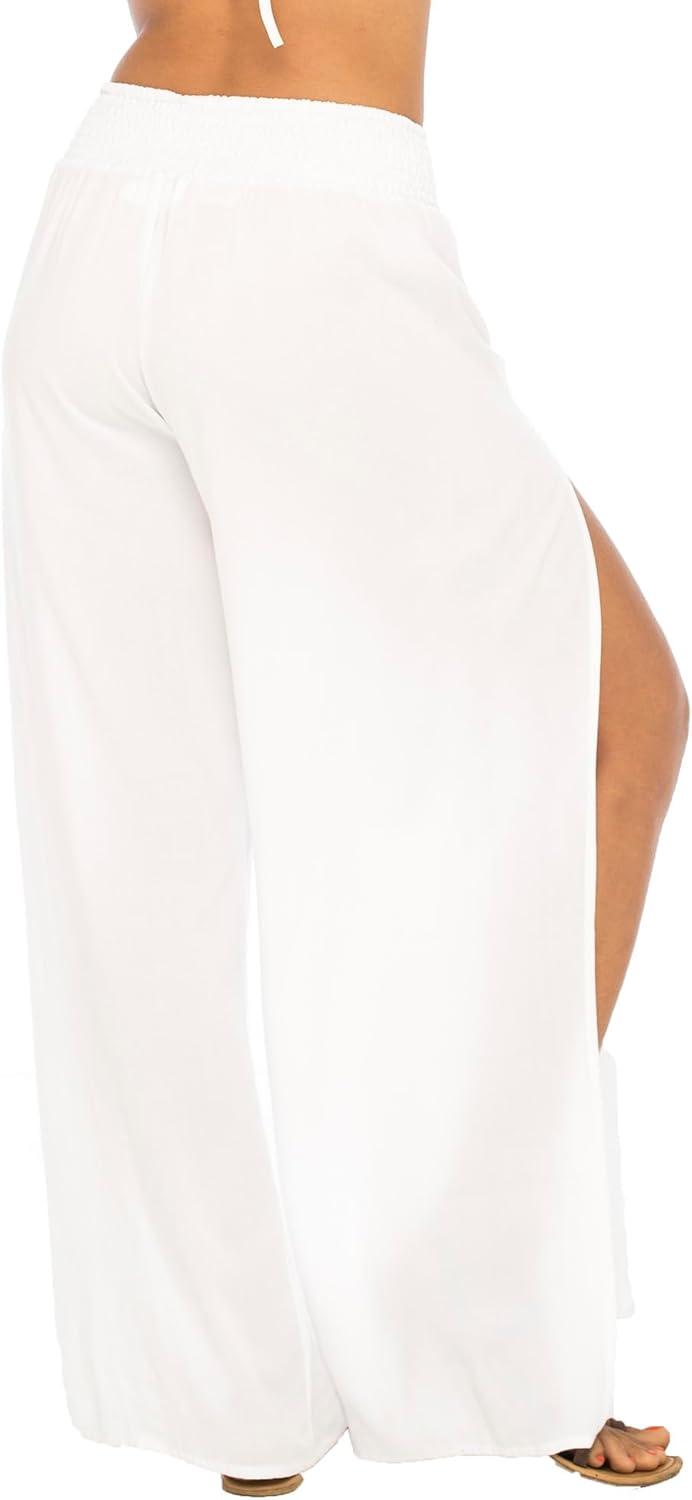 Back From Bali Womens Palazzo Pants Wide Leg Loose Beach Pants with Slit Boho Swimsuit Cover Up…(White)