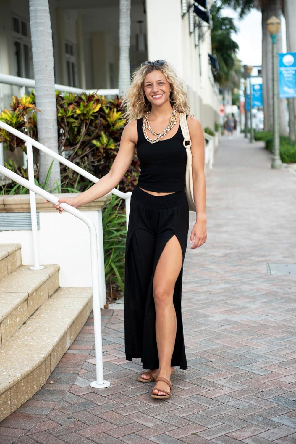 Back From Bali Womens Palazzo Pants Wide Leg Loose Beach Pants with Slit Boho Swimsuit Cover Up…(Black)