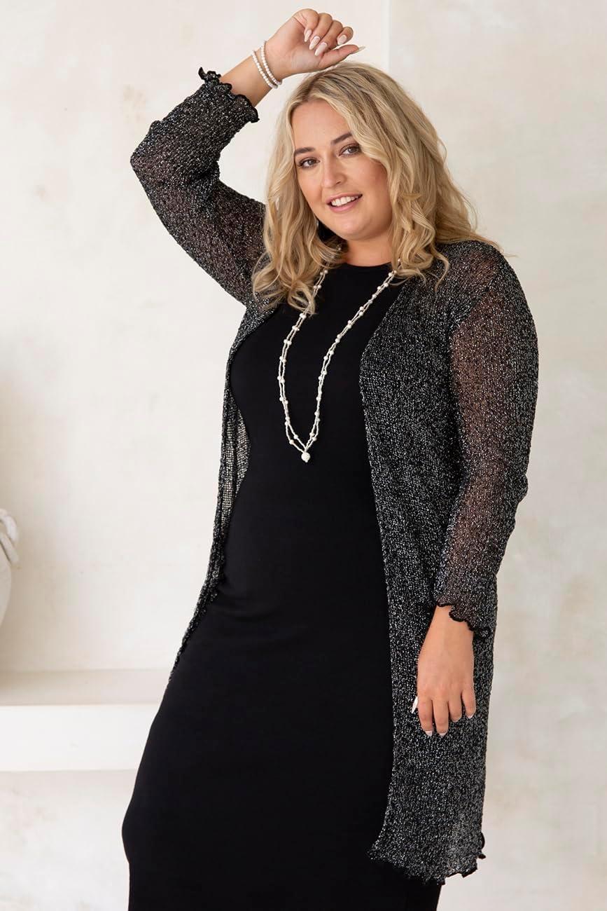 Back From Bali Womens Plus Size Metallic Sheer Long Cardigan Lightweight Open Front Shrug Lite Knit Sweater 2X 3X 4X(Silver)
