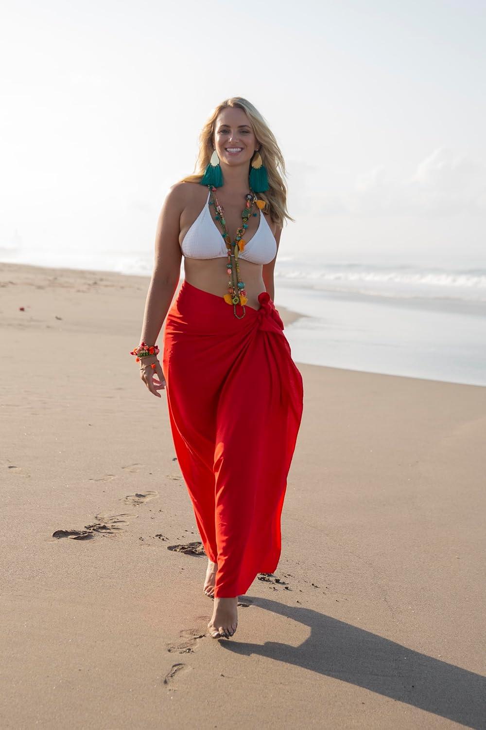 imageBack From Bali Womens Plus Size Sarong Swimsuit Cover Up Solid Beach Wear Bikini Wrap Skirt with Coconut ClipBlack