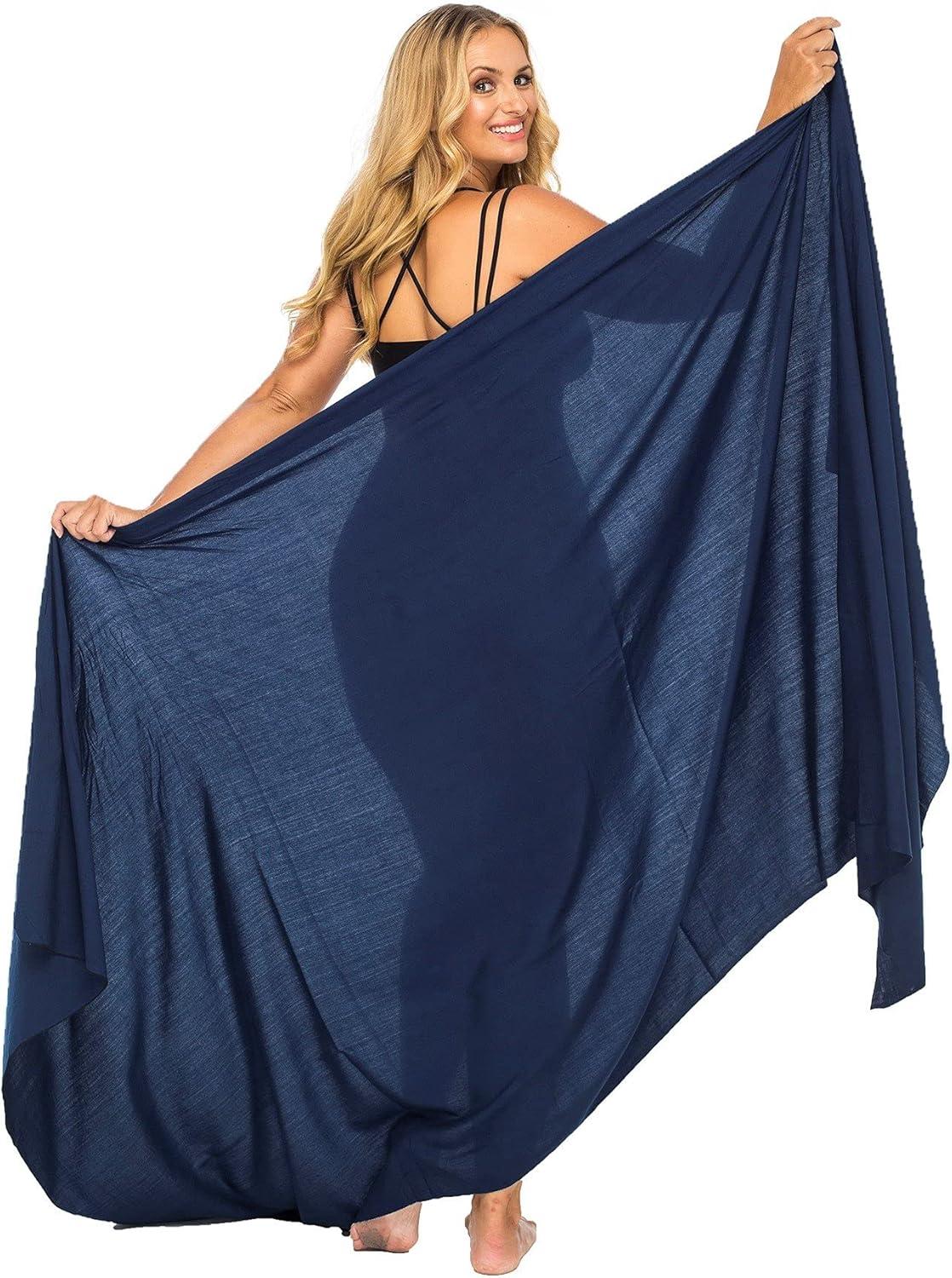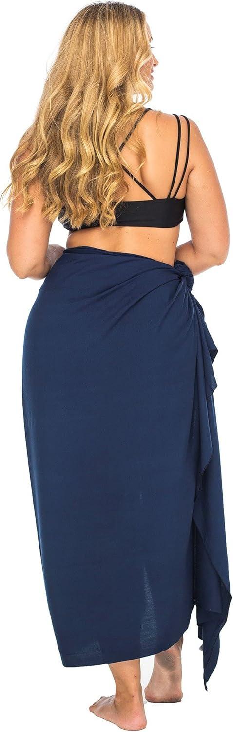 Back From Bali Womens Plus Size Sarong Swimsuit Cover Up Solid Beach Wear Bikini Wrap Skirt with Coconut Clip(Navy)