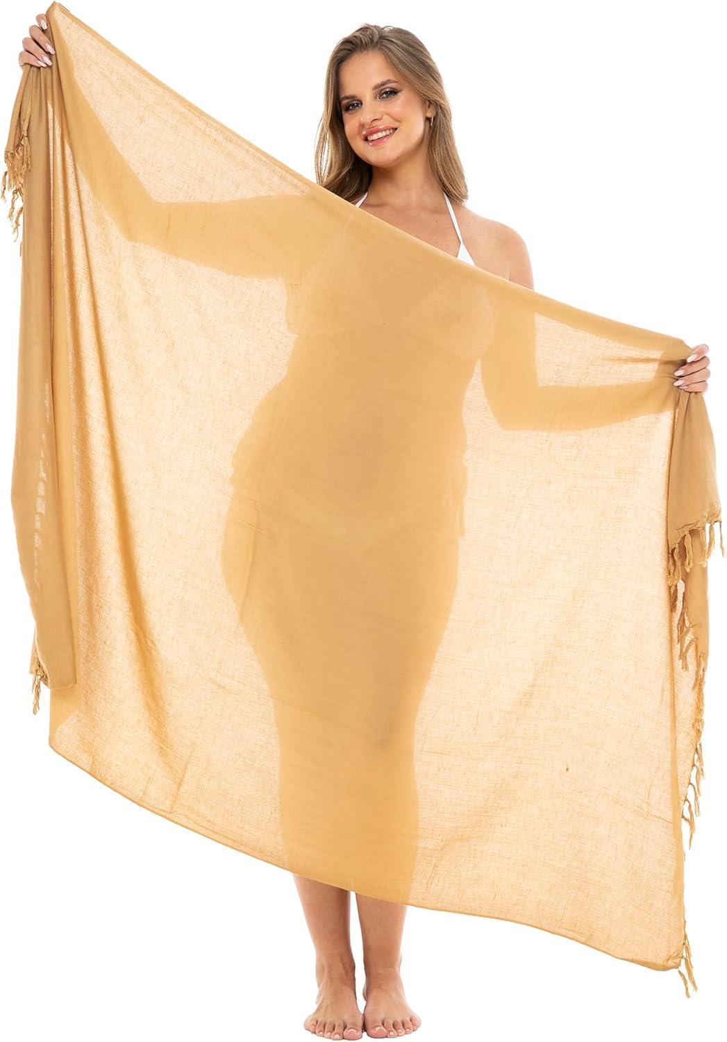 Back From Bali Womens Plus Size Sarong Wrap Solid Swimsuit Cover Up Pareo Bathing Suit Beach Skirt Coconut Clip(Caramel)