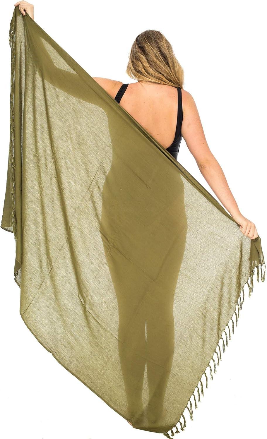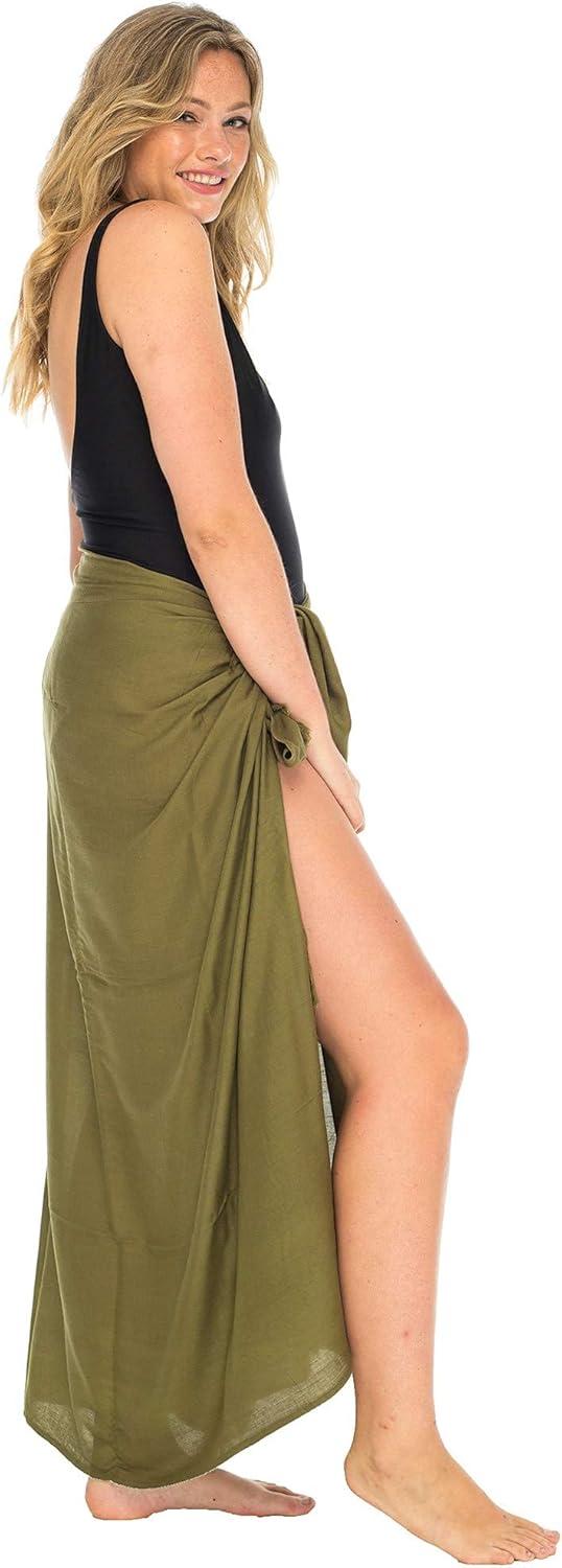 Back From Bali Womens Plus Size Sarong Wrap Solid Swimsuit Cover Up Pareo Bathing Suit Beach Skirt Coconut Clip(Olive)