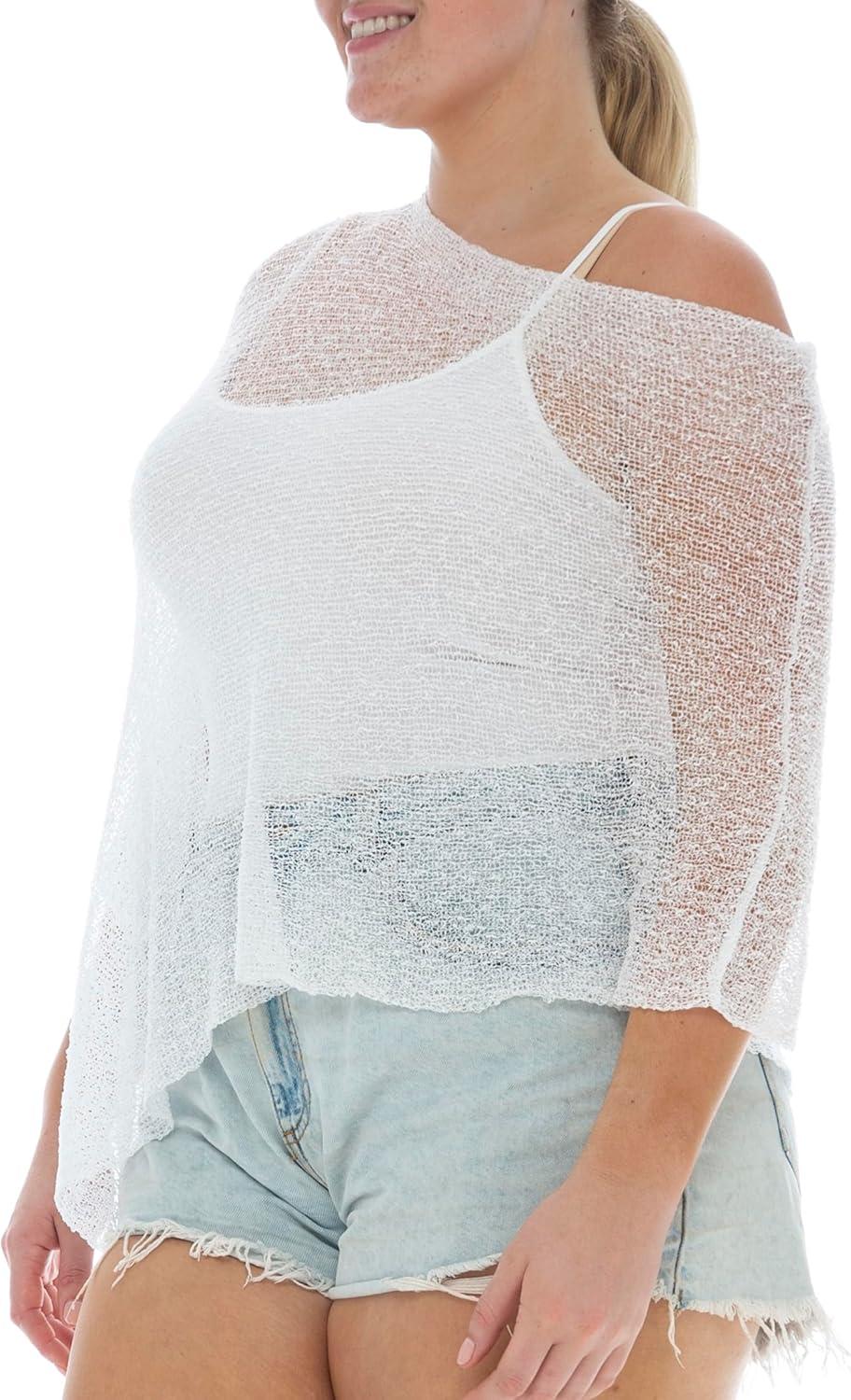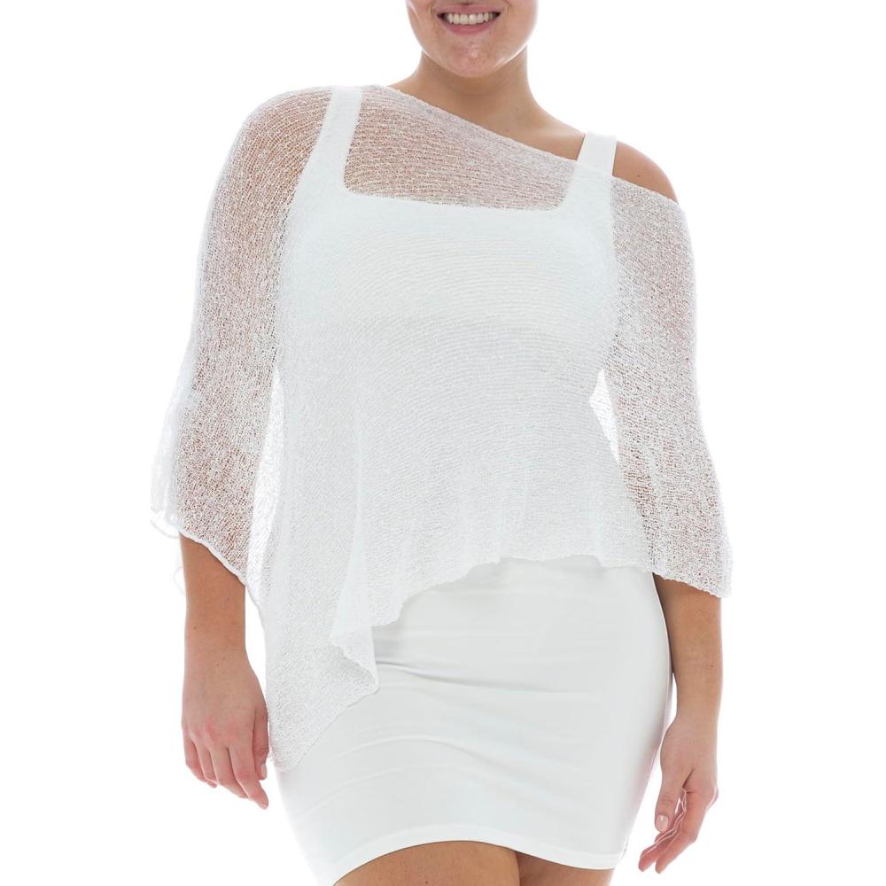 Back From Bali Womens Plus Size Sheer Poncho Shrug – Lightweight Knit Pullover Bolero Sweater 2X 3X 4X(White)