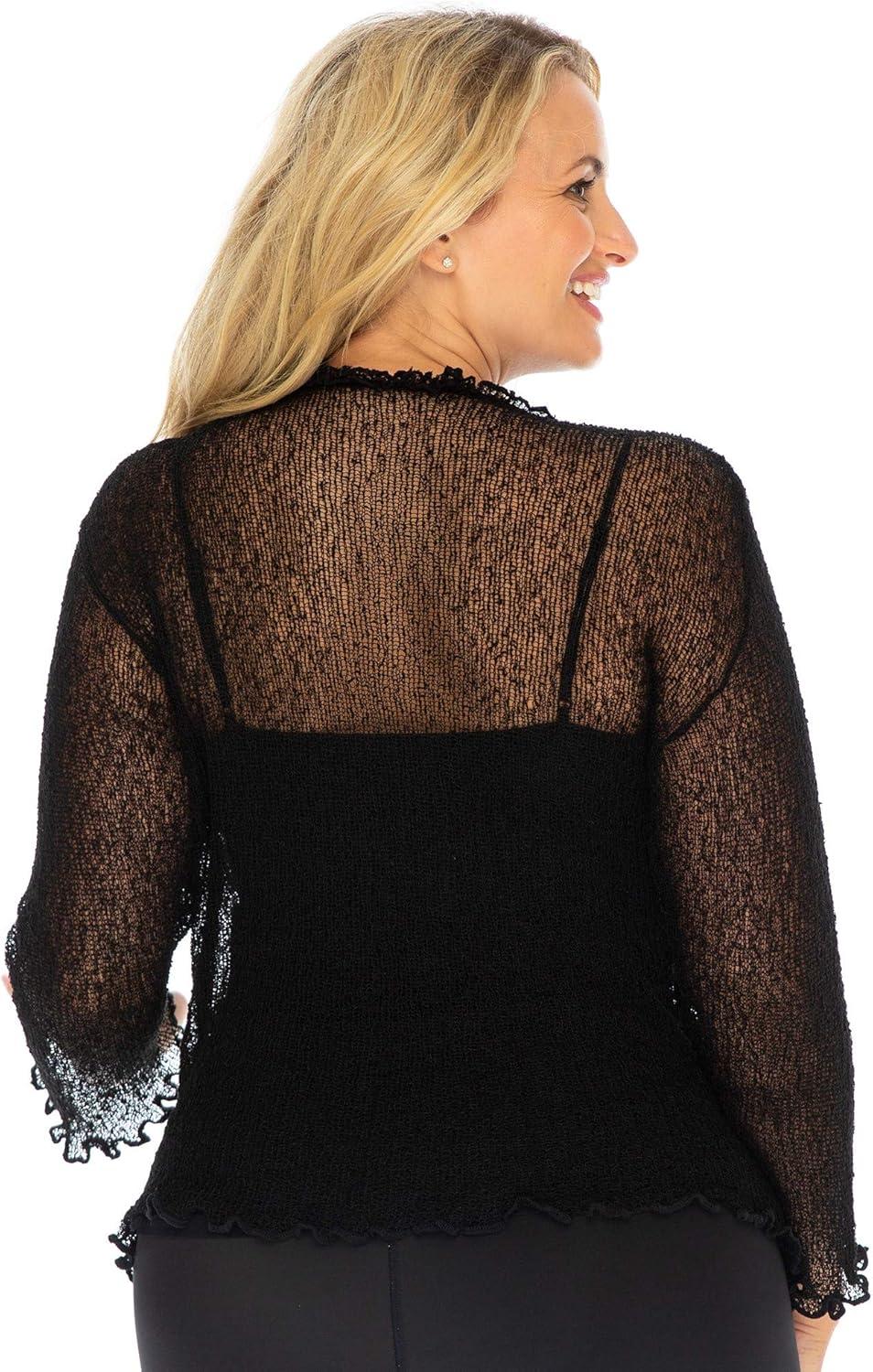 Back From Bali Womens Plus Size Sheer Ruffle Shrug Lightweight Bolero Cardigan Arm Cover 2X 3X 4X(Black Silver)