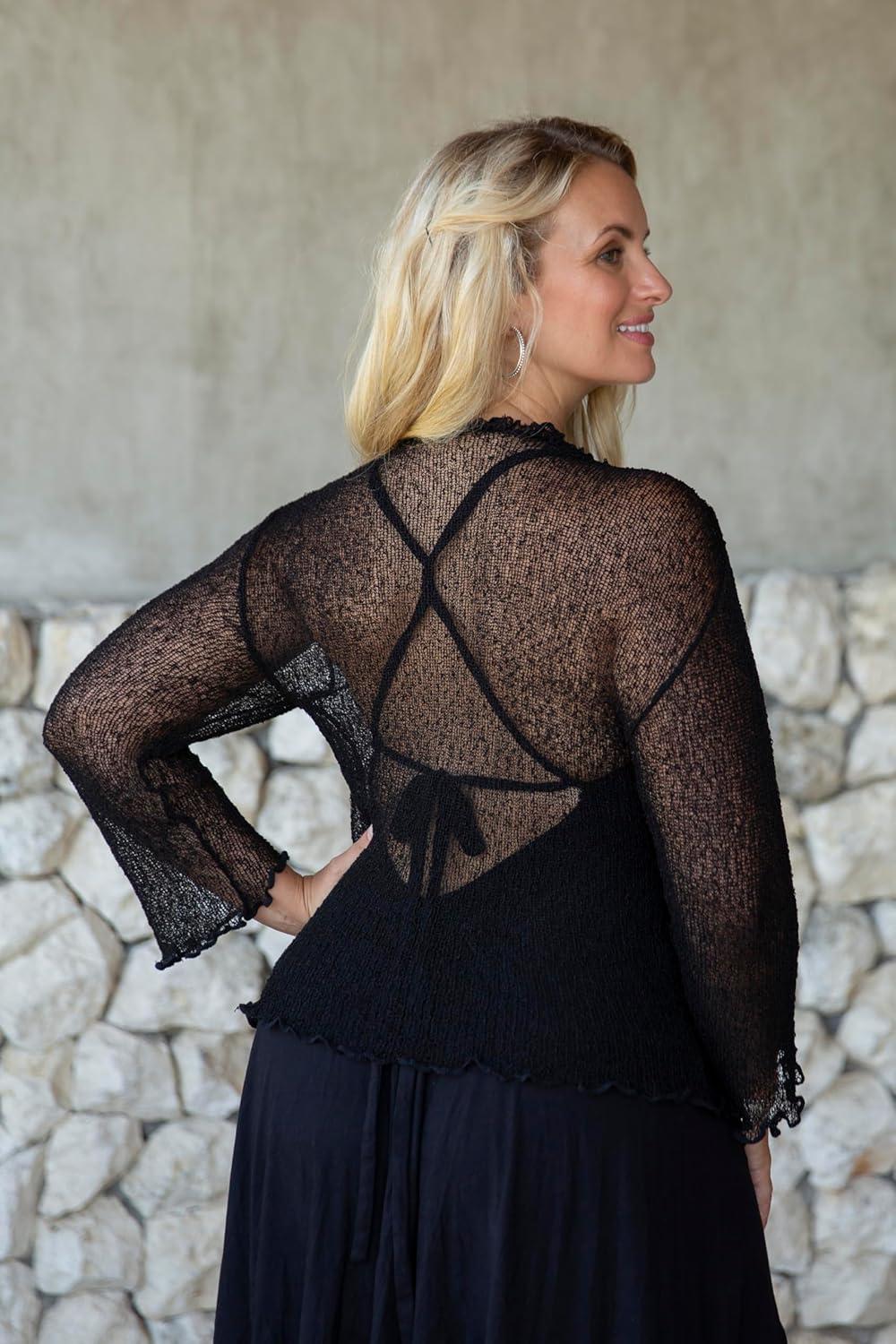 Back From Bali Womens Plus Size Sheer Ruffle Shrug Lightweight Bolero Cardigan Arm Cover 2X 3X 4X(Black New)