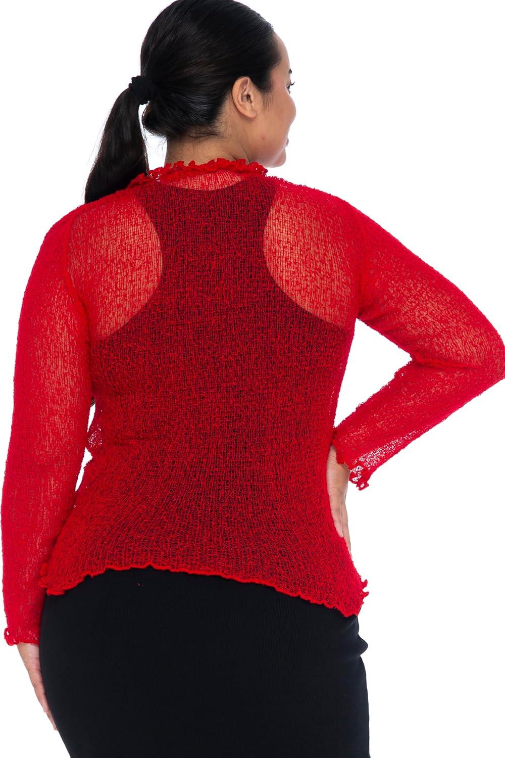 Back From Bali Womens Plus Size Sheer Ruffle Shrug Lightweight Bolero Cardigan Arm Cover 2X 3X 4X(Fiesta Red)