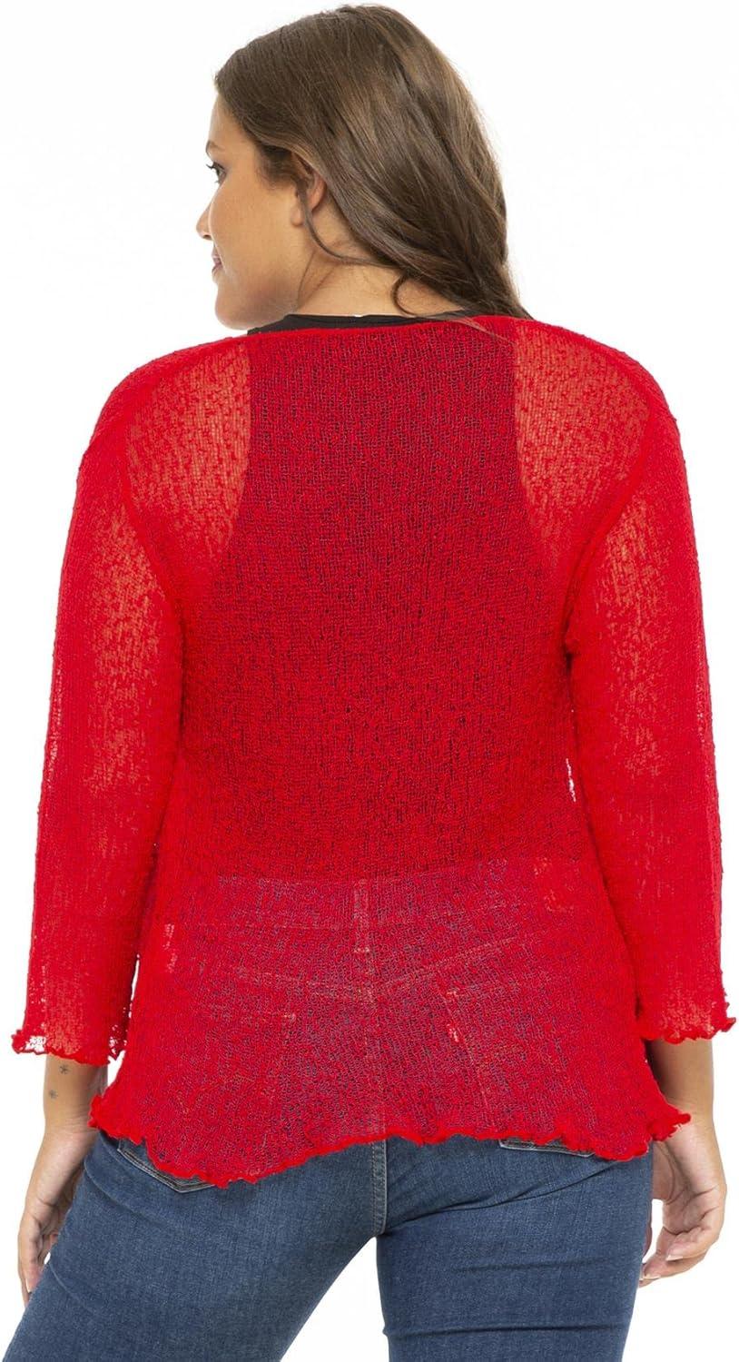 Back From Bali Womens Plus Size Shrug Bolero Sheer Cardigan Arm Cover 2X 3X 4X Lightweight(Fiesta Red)