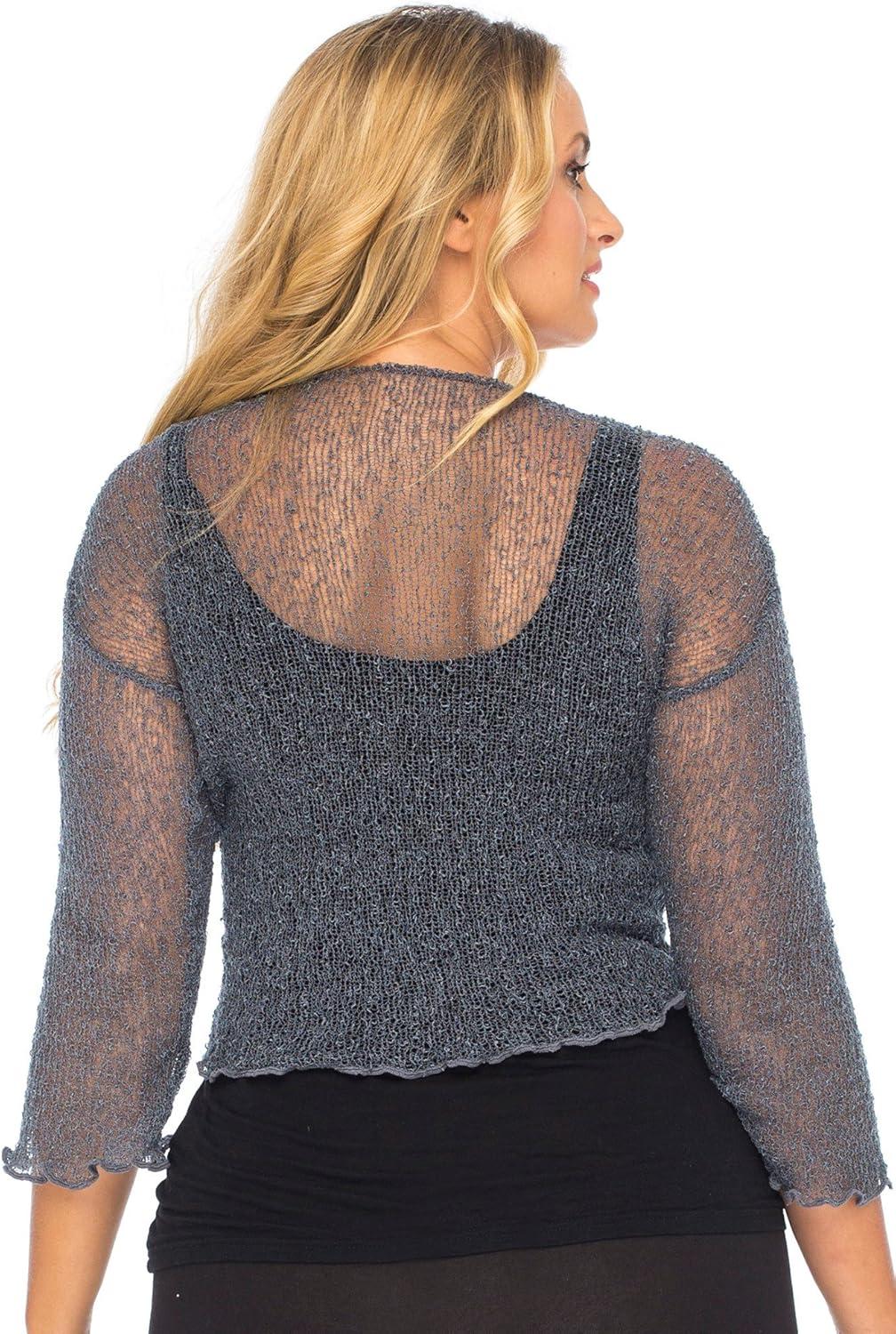 Back From Bali Womens Plus Size Shrug Bolero Sheer Cardigan Arm Cover 2X 3X 4X Lightweight(Grey)