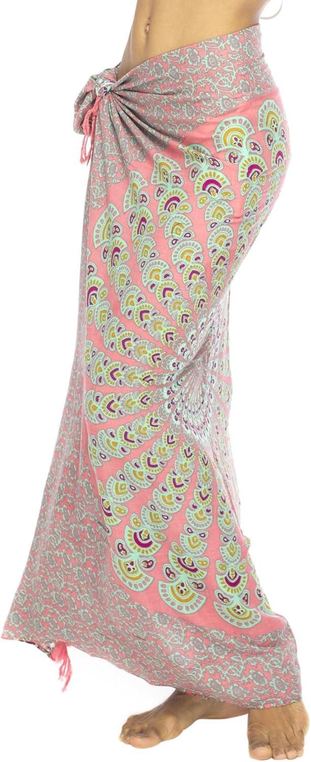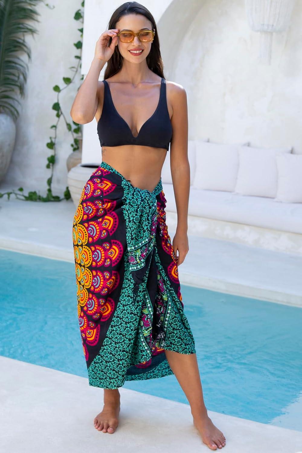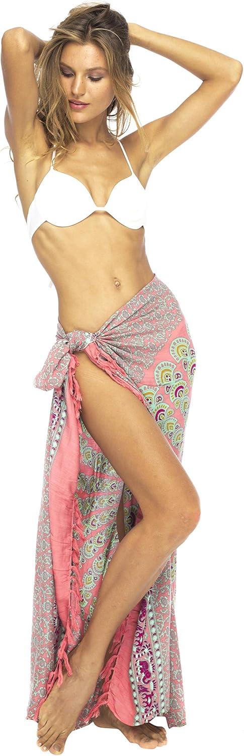 Back From Bali Womens Sarong Beach Swimsuit Bikini Cover up Wrap Peacock & Clip(Coral)