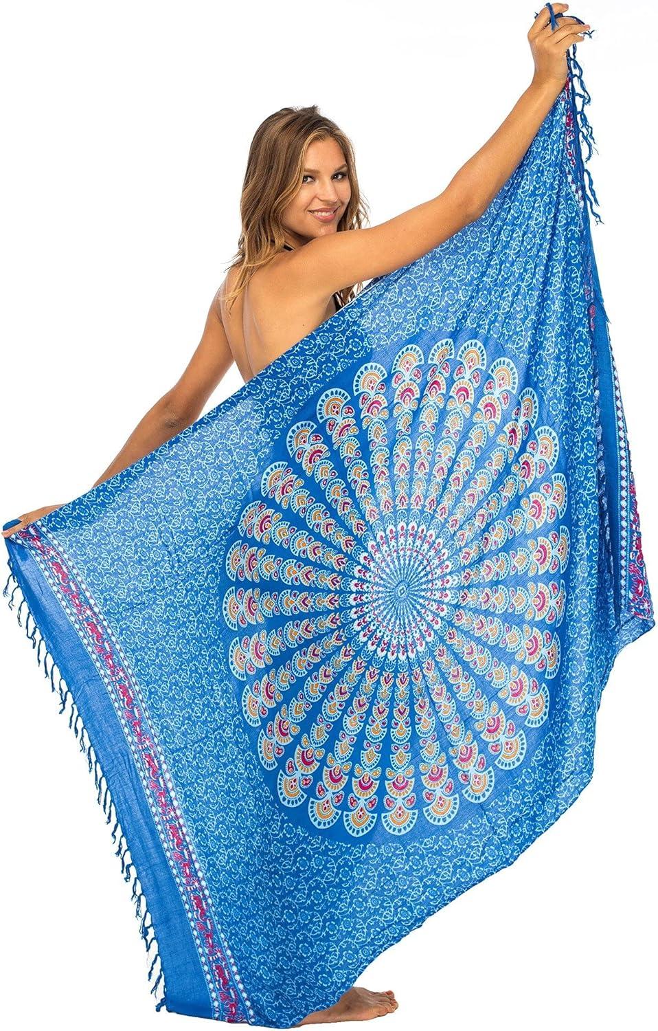Back From Bali Womens Sarong Beach Swimsuit Bikini Cover up Wrap Peacock & Clip(Gaza Blue)