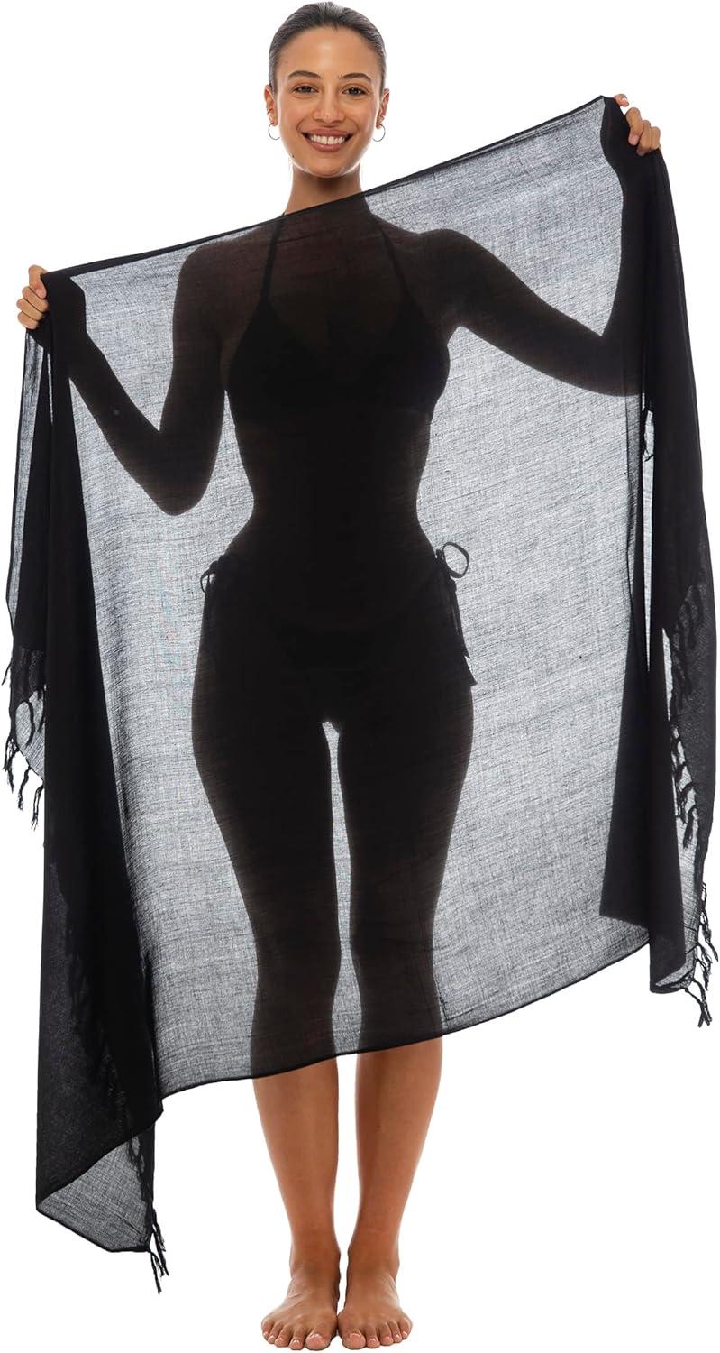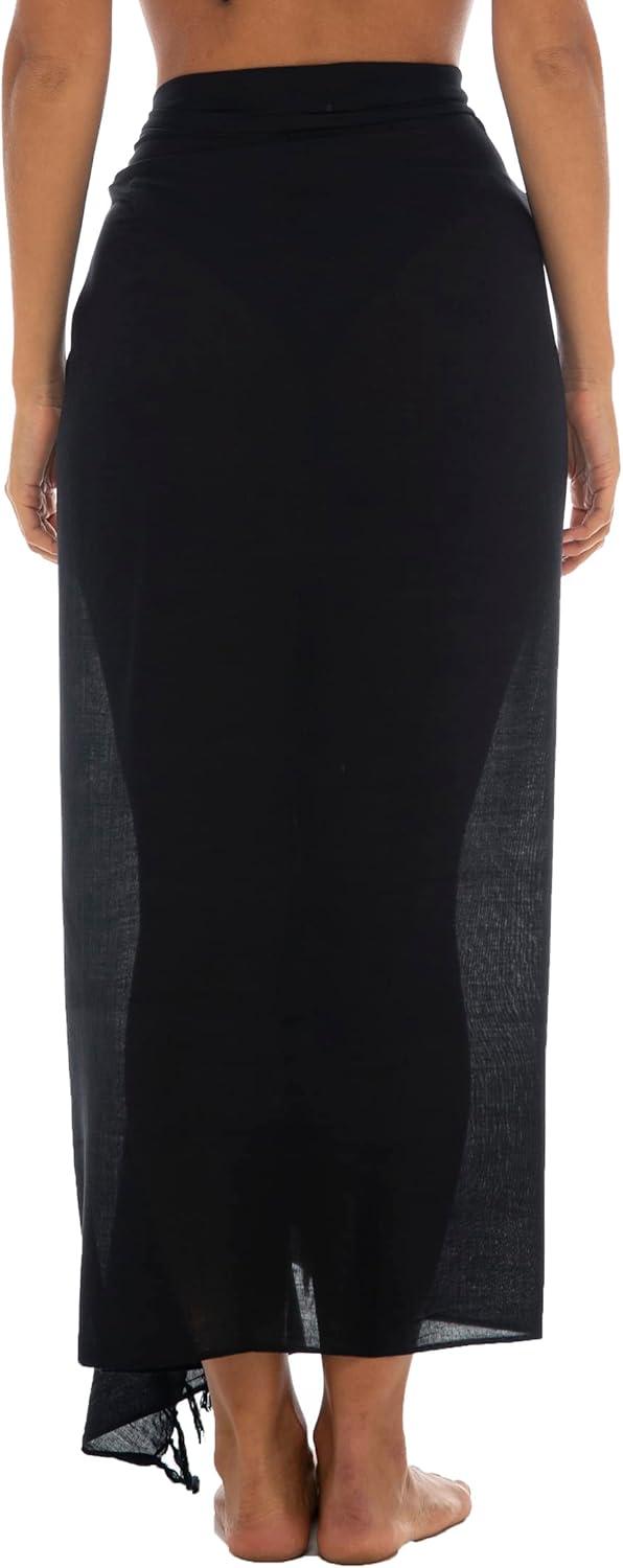 Back From Bali Womens Sarong Wrap Swimsuit Cover Up Solid Beach Pareo Bathing Suit Skirt Coconut Tie Clip(Black)