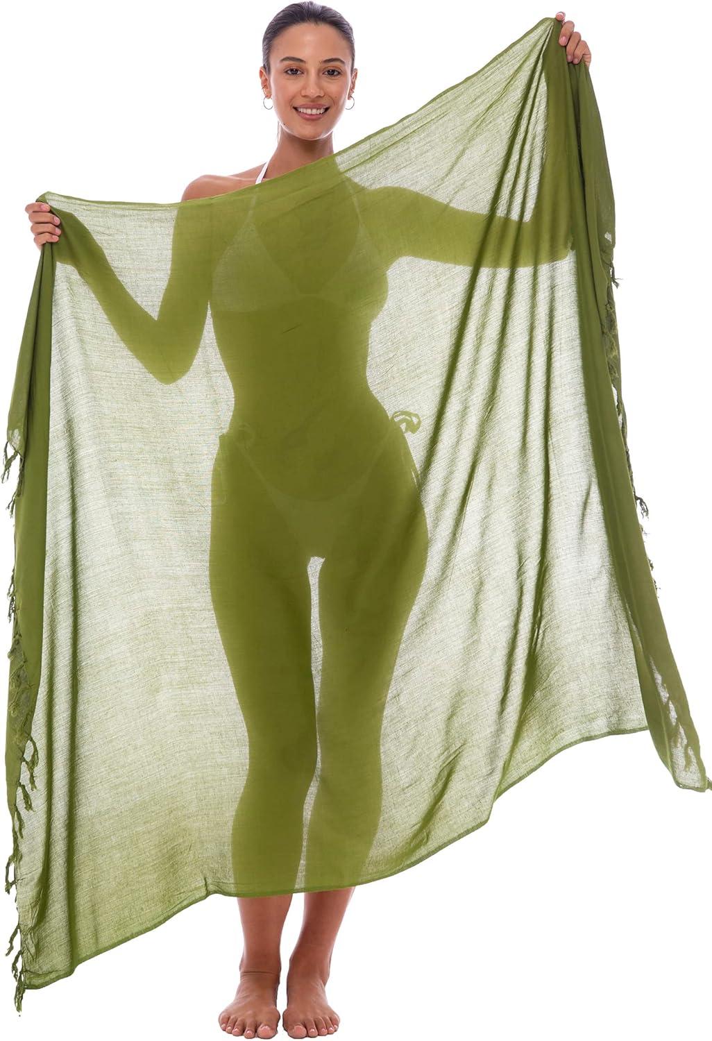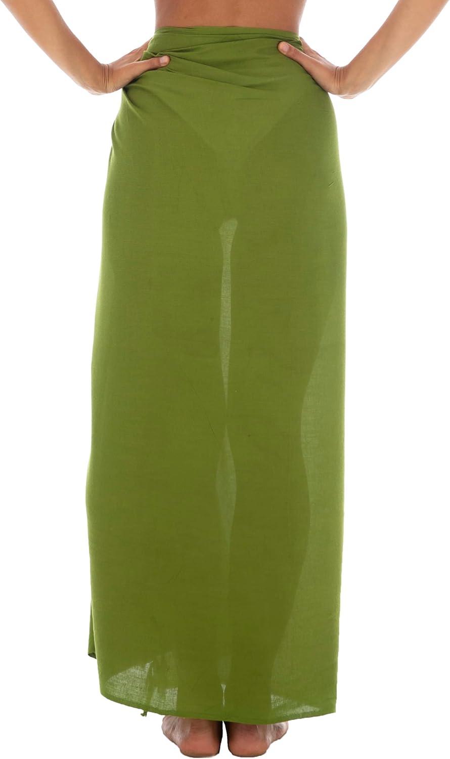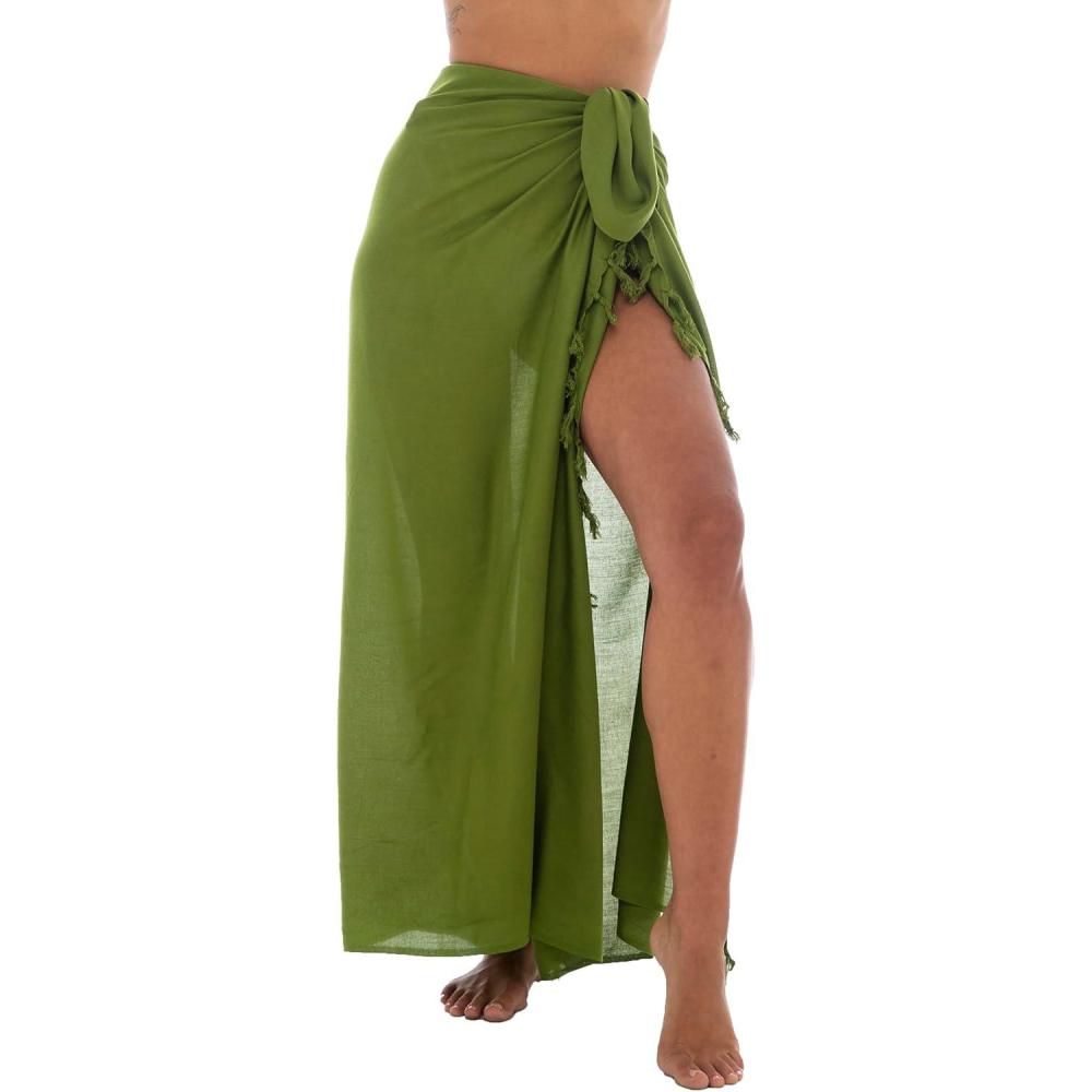 Back From Bali Womens Sarong Wrap Swimsuit Cover Up Solid Beach Pareo Bathing Suit Skirt Coconut Tie Clip(Olive)