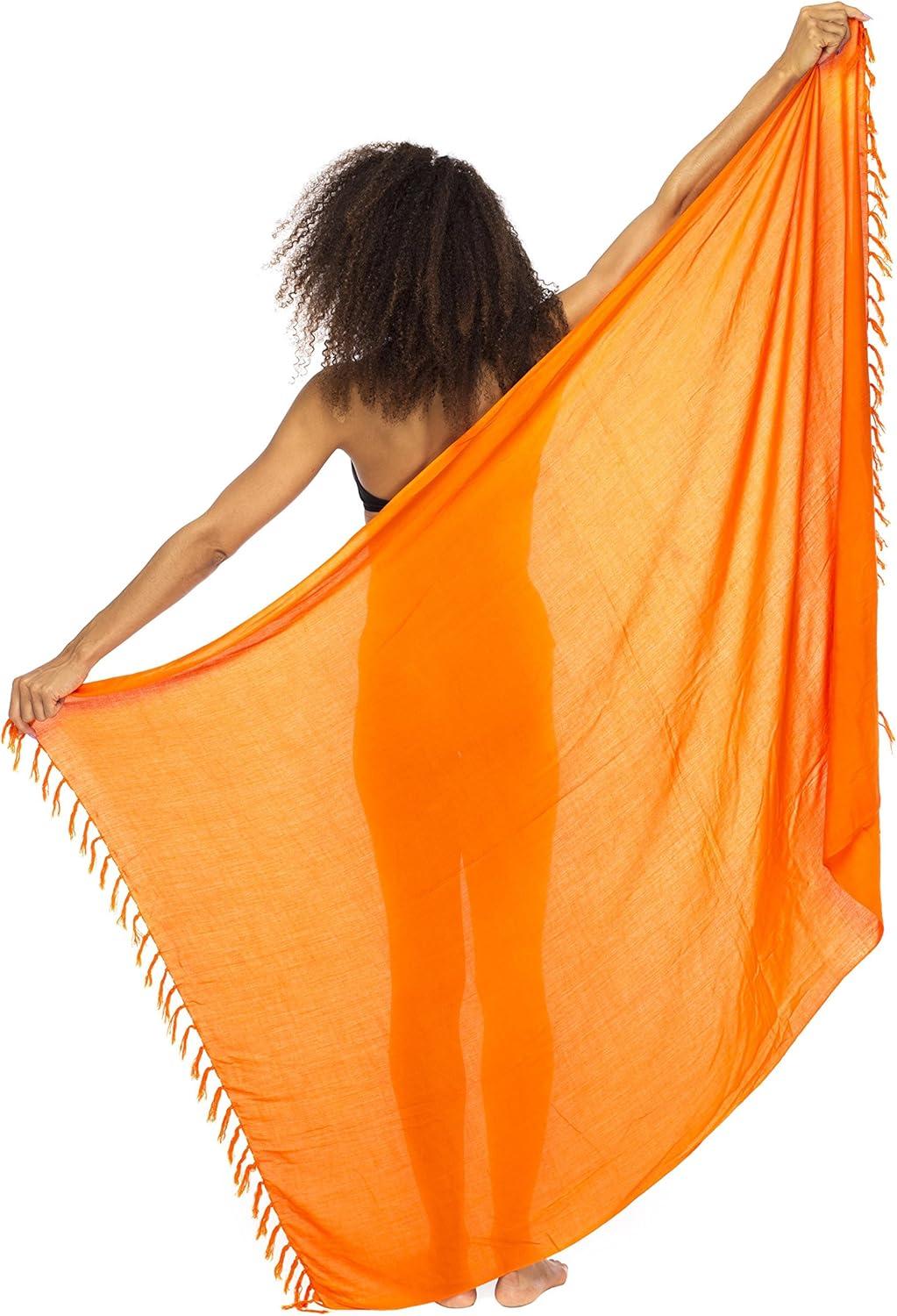 Back From Bali Womens Sarong Wrap Swimsuit Cover Up Solid Beach Pareo Bathing Suit Skirt Coconut Tie Clip(Orange)