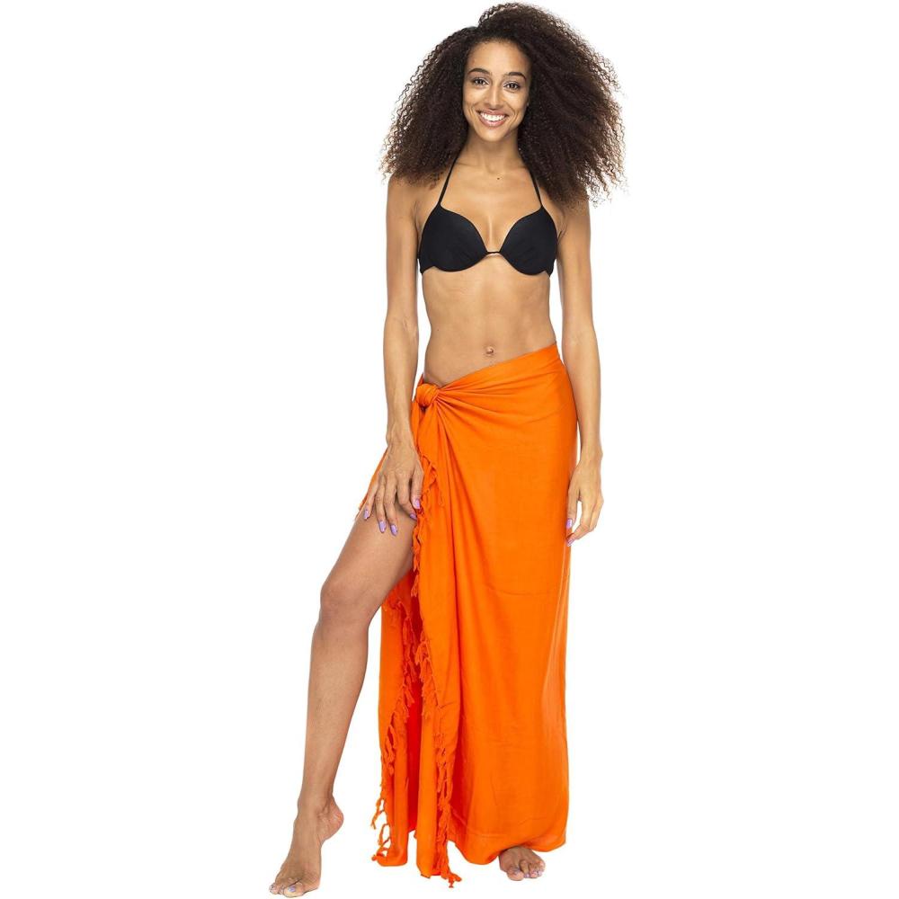 imageBack From Bali Womens Sarong Wrap Swimsuit Cover Up Solid Beach Pareo Bathing Suit Skirt Coconut Tie ClipOrange