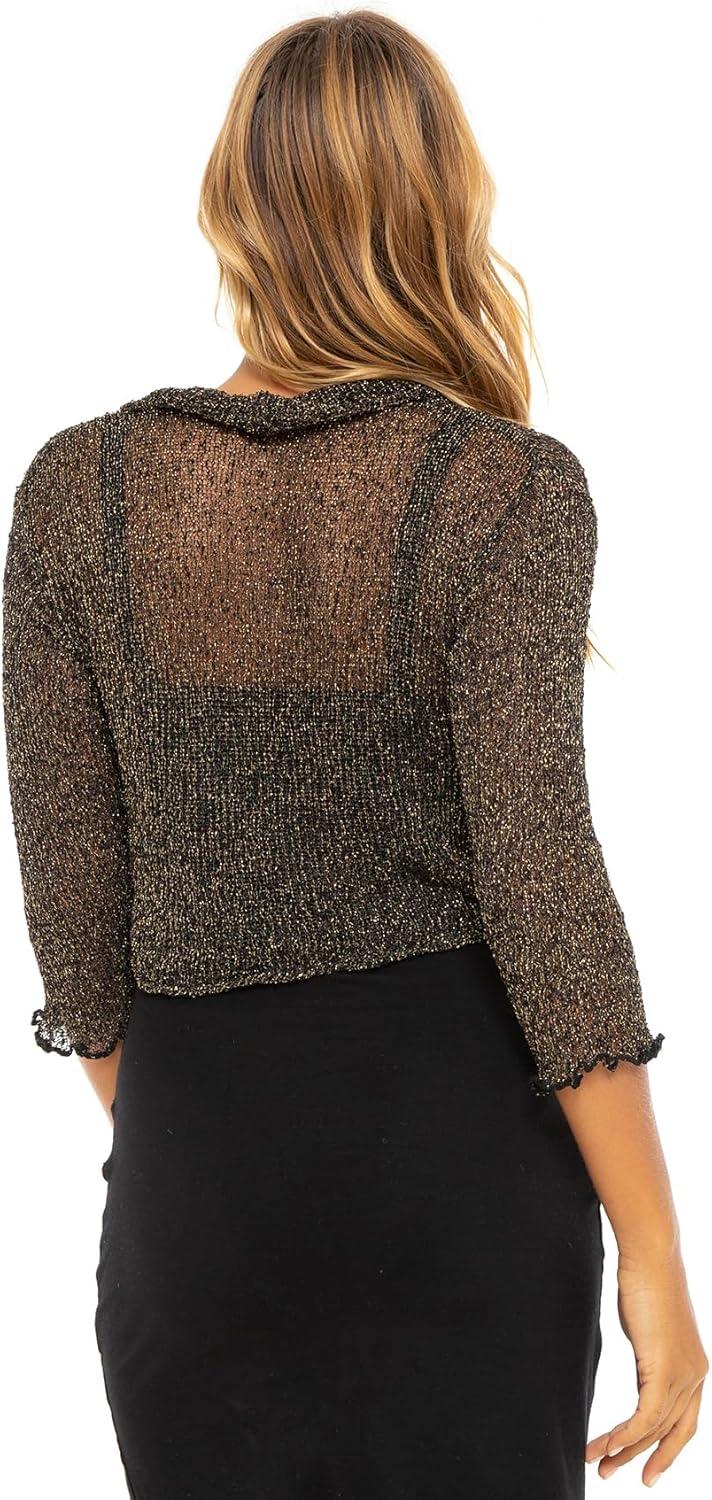 imageBack From Bali Womens Sheer Bolero Shrug Lightweight Knit Sweater for Dresses Cropped Jacket Evening DressesBlack Gold