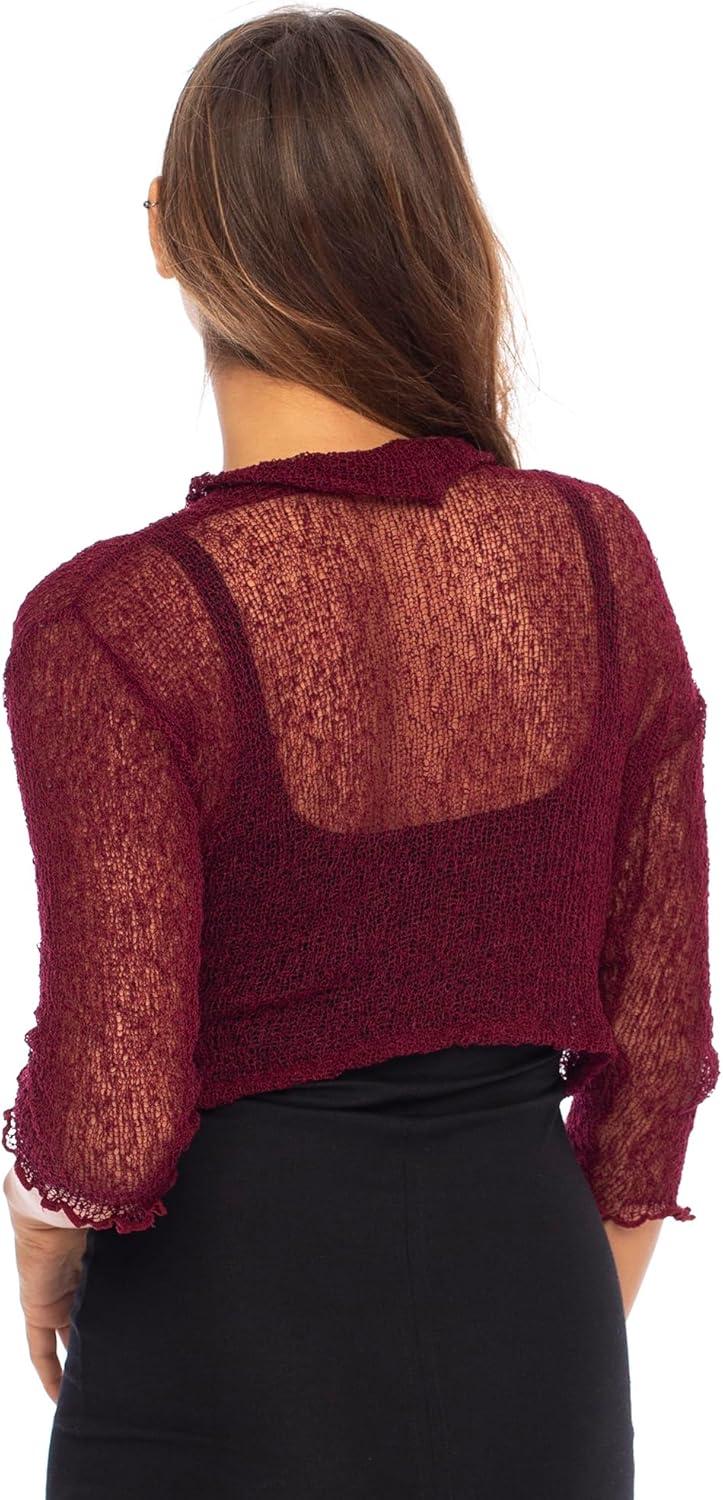 Back From Bali Womens Sheer Bolero Shrug Lightweight Knit Sweater for Dresses, Cropped Jacket Evening Dresses(Maroon)