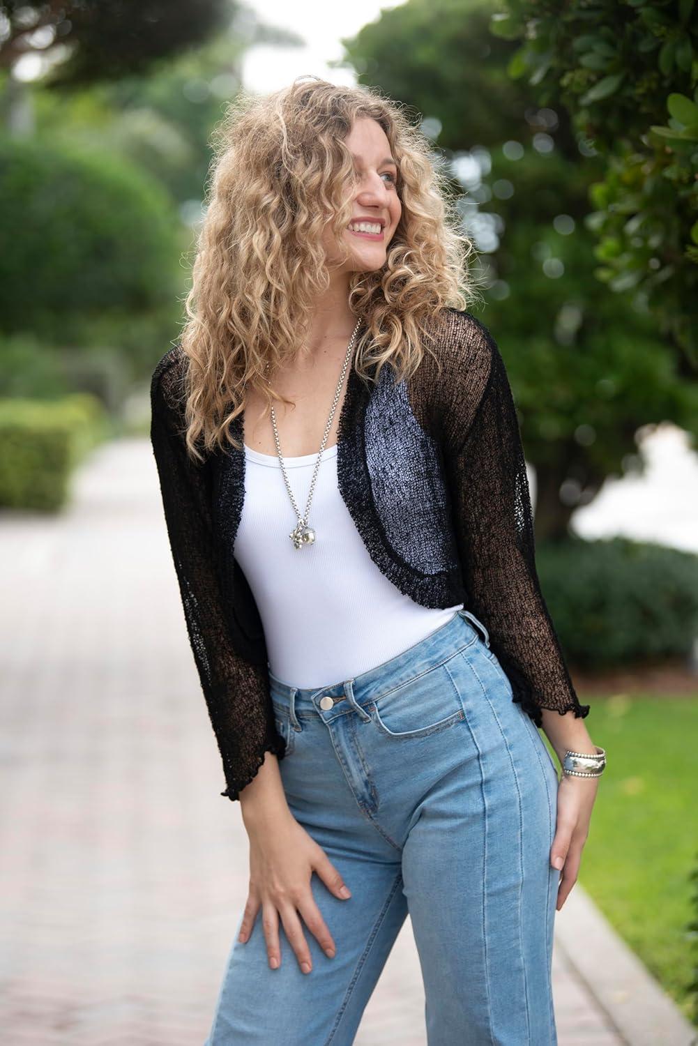 imageBack From Bali Womens Sheer Bolero Shrug Lightweight Knit Sweater for Dresses Cropped Jacket Evening DressesJewel