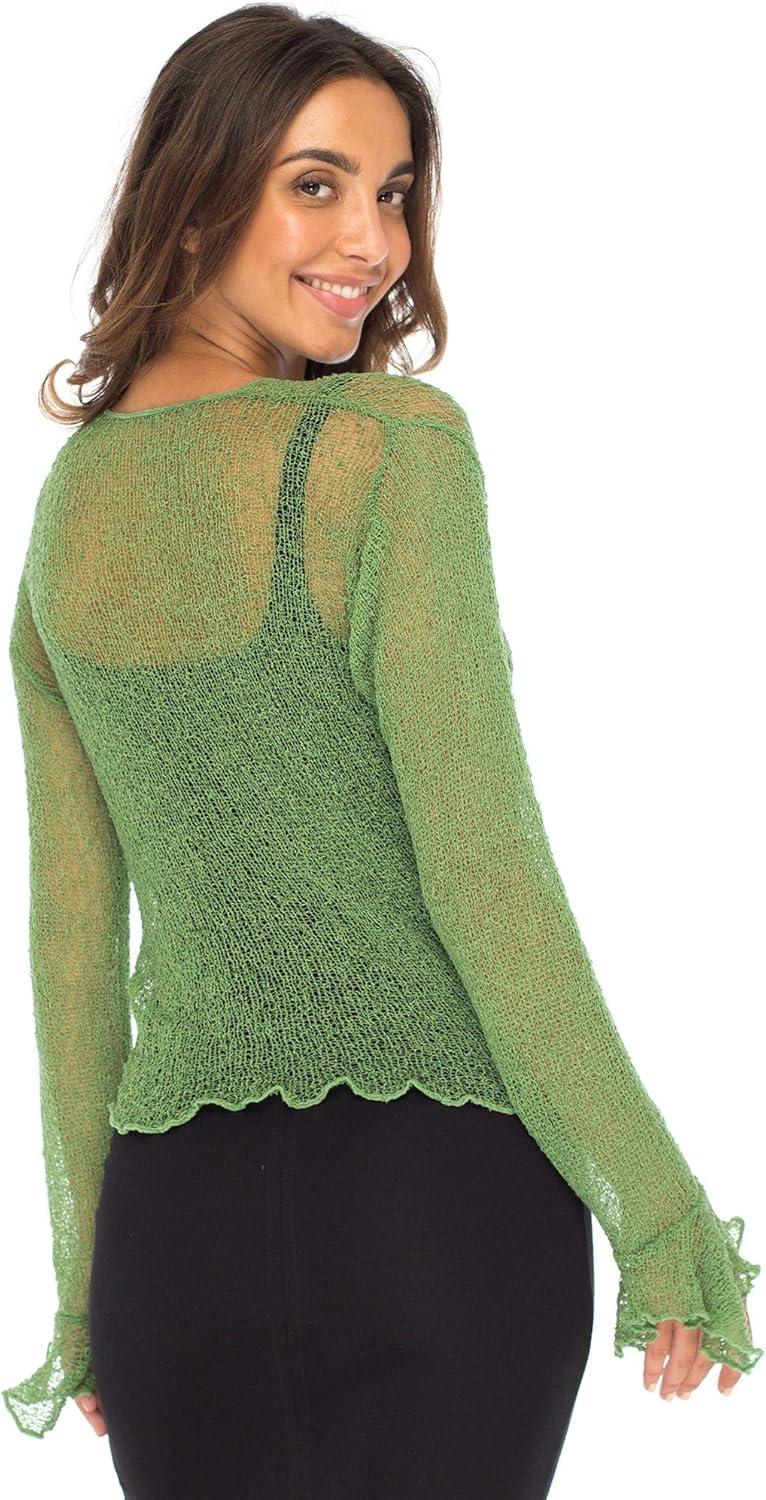 Back From Bali Womens Sheer Shrug Bolero Long Sleeves Cropped Cardigan Lite Bell Sleeves(Green)