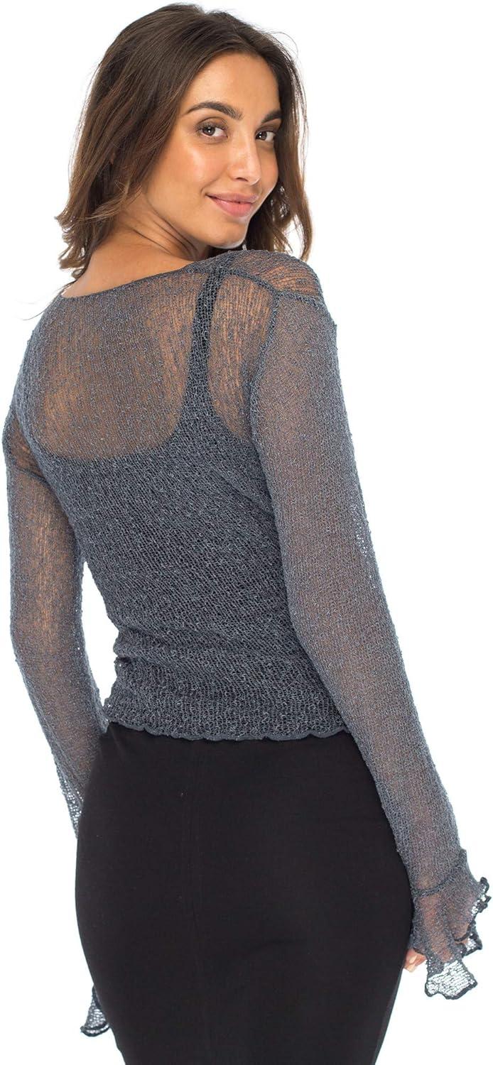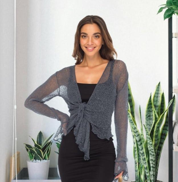 Back From Bali Womens Sheer Shrug Bolero Long Sleeves Cropped Cardigan Lite Bell Sleeves(Gunmetal)