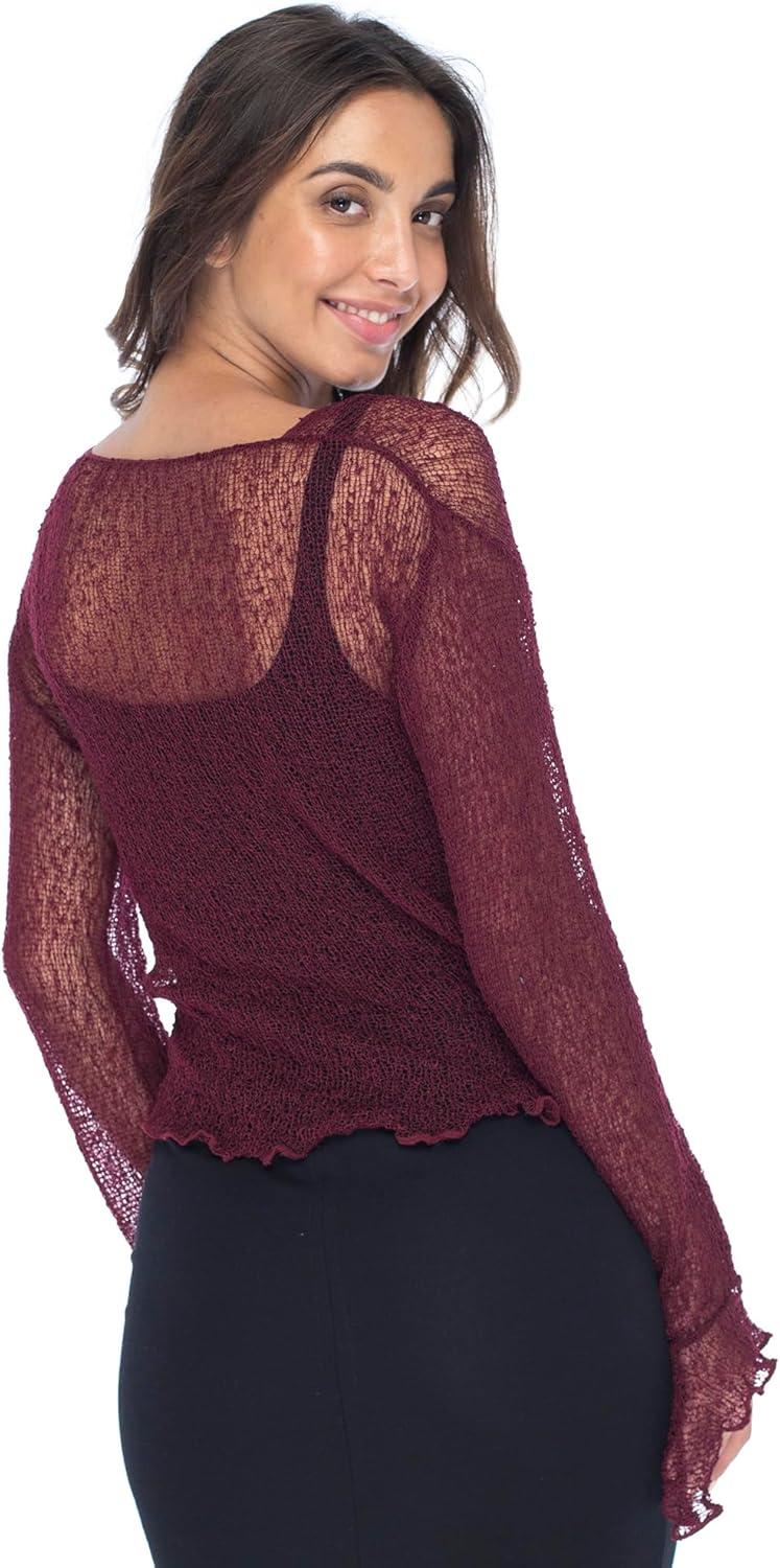 Back From Bali Womens Sheer Shrug Bolero Long Sleeves Cropped Cardigan Lite Bell Sleeves(Maroon)