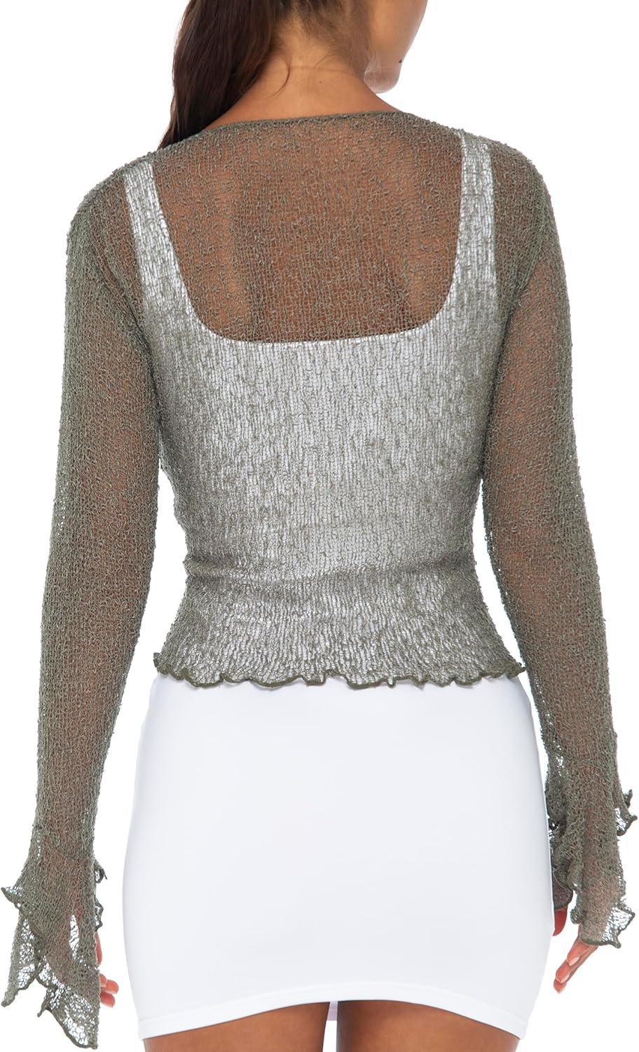 Back From Bali Womens Sheer Shrug Bolero Long Sleeves Cropped Cardigan Lite Bell Sleeves(Grey)