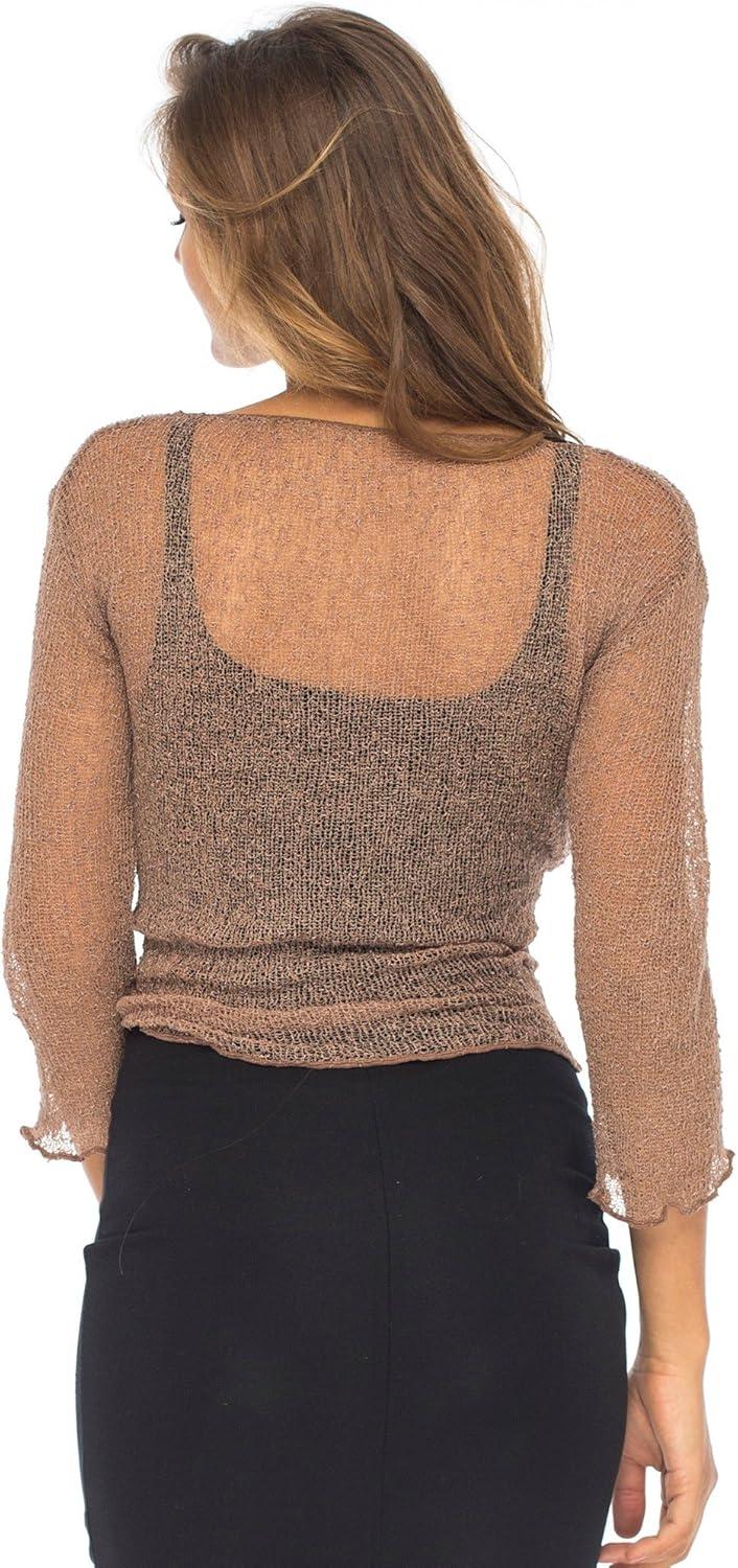 Back From Bali Womens Sheer Shrug Cardigan Lightweight Knit(Taupe)