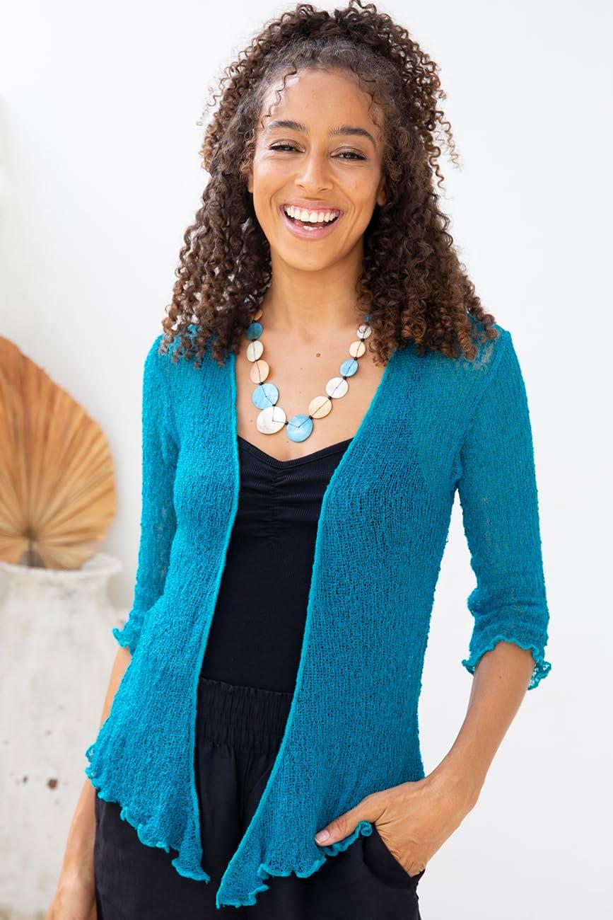 Back From Bali Womens Sheer Shrug Cardigan Lightweight Knit(Turquoise)