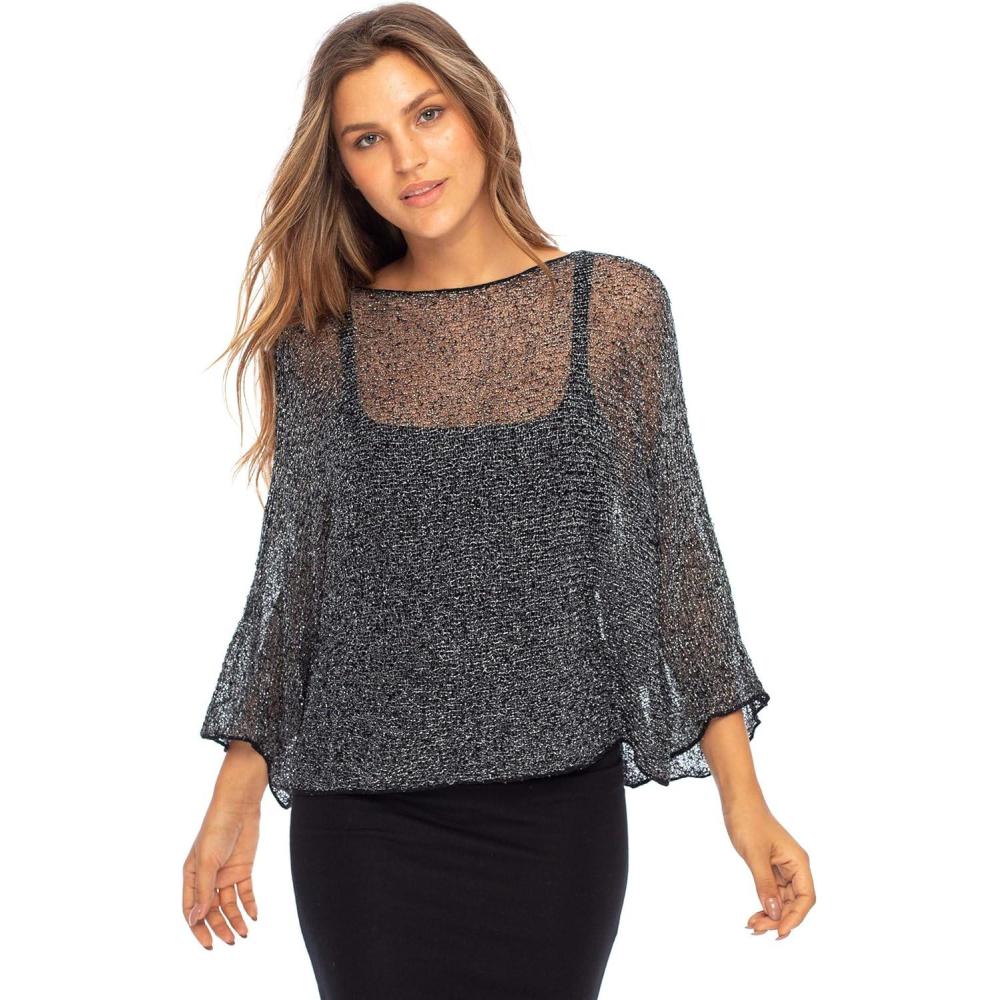 imageBack From Bali Womens Sheer Shrug Dressy Poncho Top Lightweight Mesh Knit Sweater Dolman SleevesBlack Silver