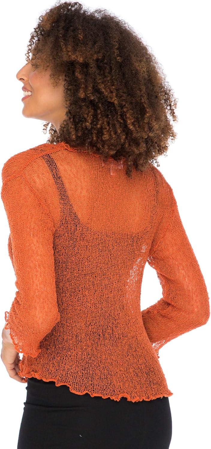 Back From Bali Womens Sheer Shrug Ruffle Cardigan Lightweight Sweater Bolero Arm Cover(Burnt Orange)