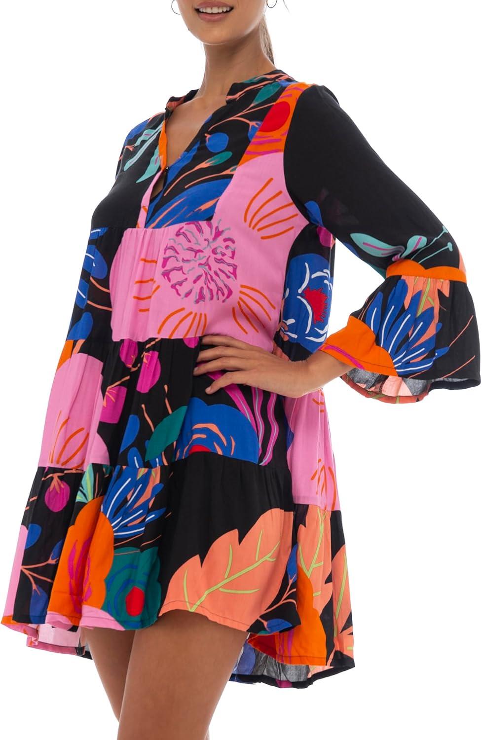 imageBack From Bali Womens Short Sundress Flowy Boho Beach Dress with Embroidered V Neck Casual Sexy Summer Party DressFlower Black