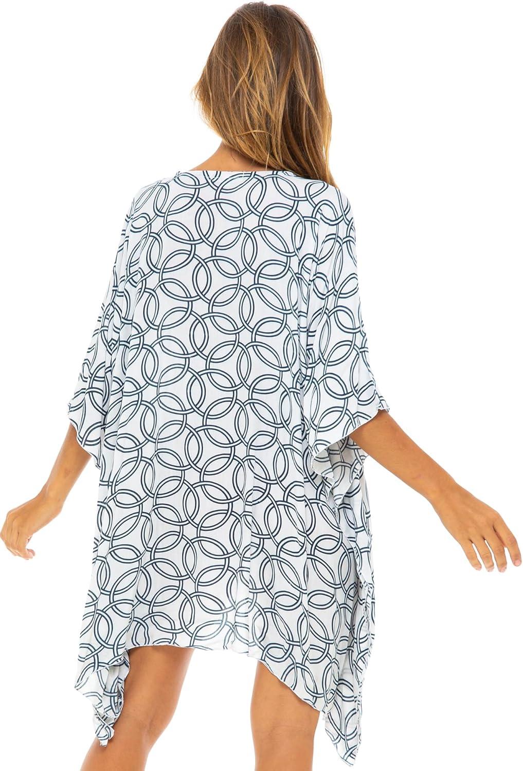 Back From Bali Womens Swimsuit Cover Up Short Poncho Print Pullover Beach Caftan for Bathing Suit(Olympic Black)