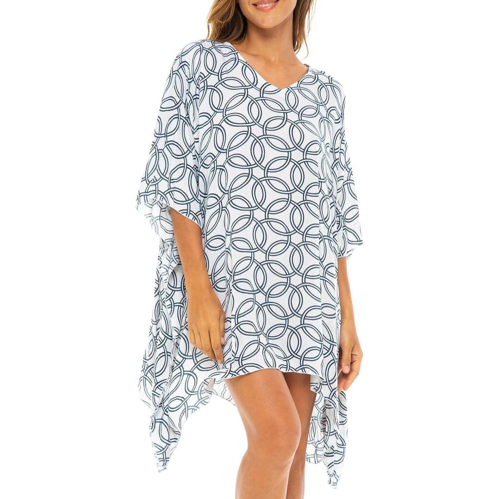 Back From Bali Womens Swimsuit Cover Up Short Poncho Print Pullover Beach Caftan for Bathing Suit(Olympic Navy)
